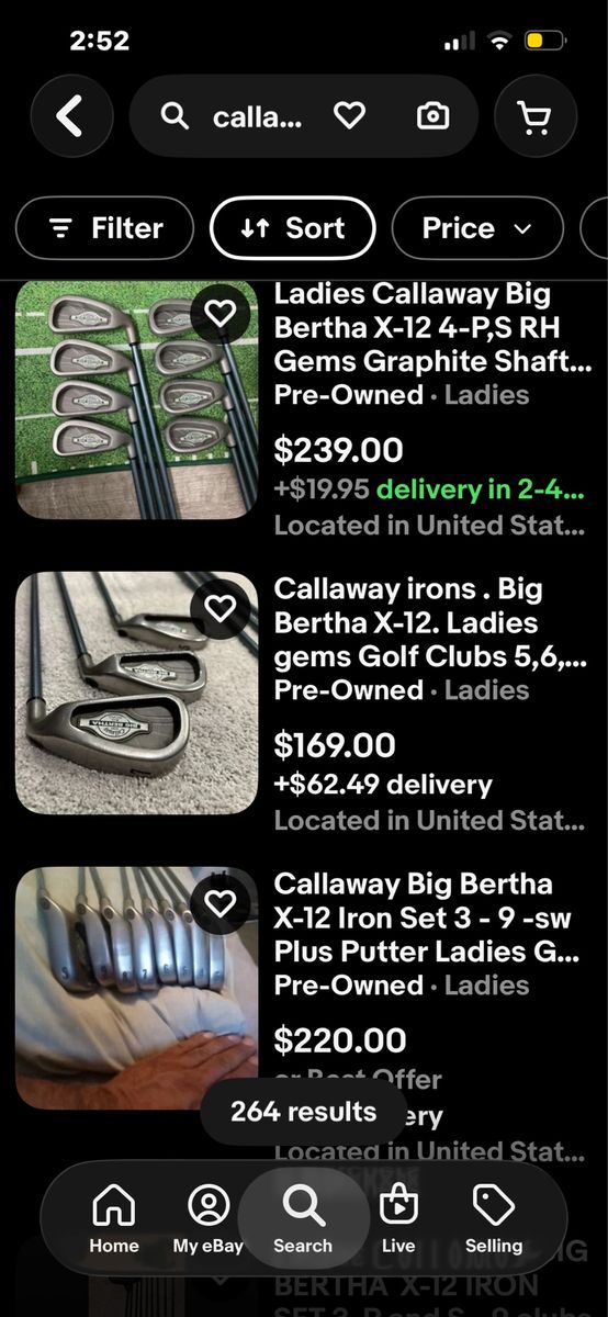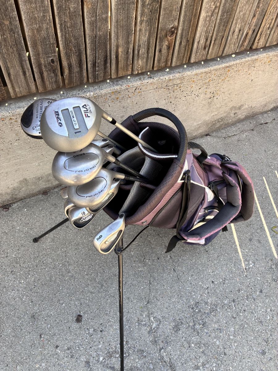 VenmoStill available-Nice starter to intermediate set of lady golf clubs for sale. Good for a lady in the low 5 ft range. SEE PICTURES for comparable eBay pricing. Set includes Callaway #2 driver, a Fila 12 .5 degree driver, Diana 3 and 5 woods, Callaway cavity back irons 5-sw, a blade putter, a Callaway stand carry golf bag, golf balls, tees, ball markers etc. Set is ready to take to the range of course near you. Message or text Lorin 801-386-0027 if interested.