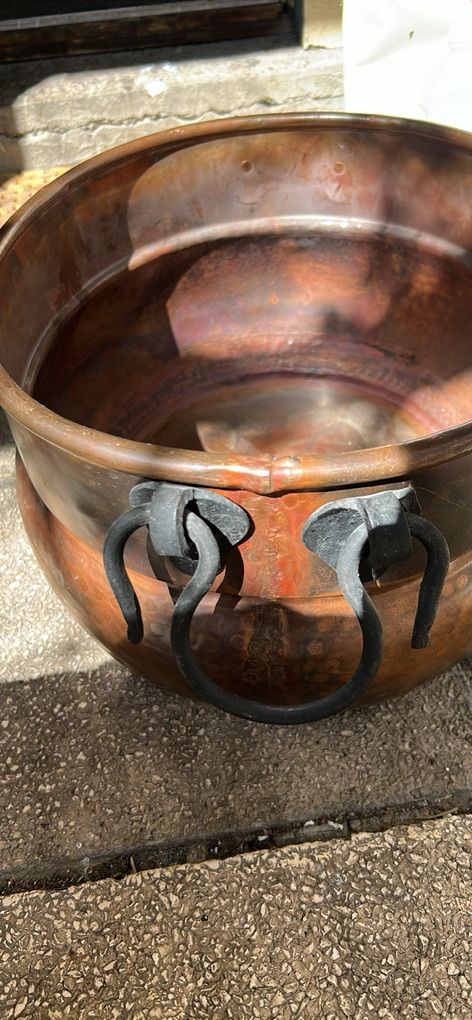 Antique/Vintage hand forged copper jardiniere Or chimney pot. 17”x13”x8.5”