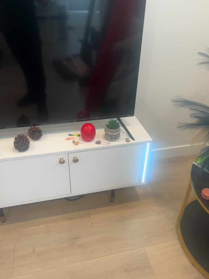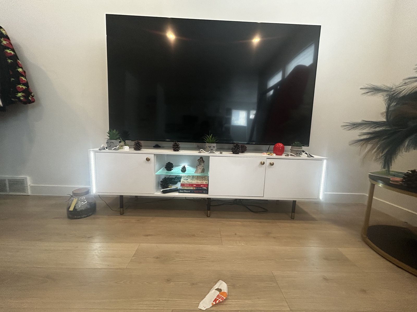 Selling a white entertainment center with built-in lighting – sleek, modern, and perfect for your living room. Plenty of space for your TV, media devices, and decor.