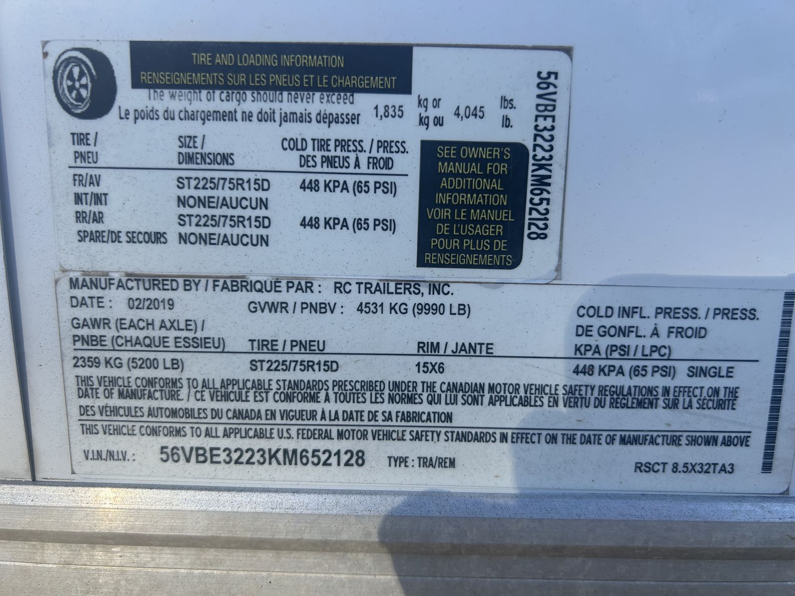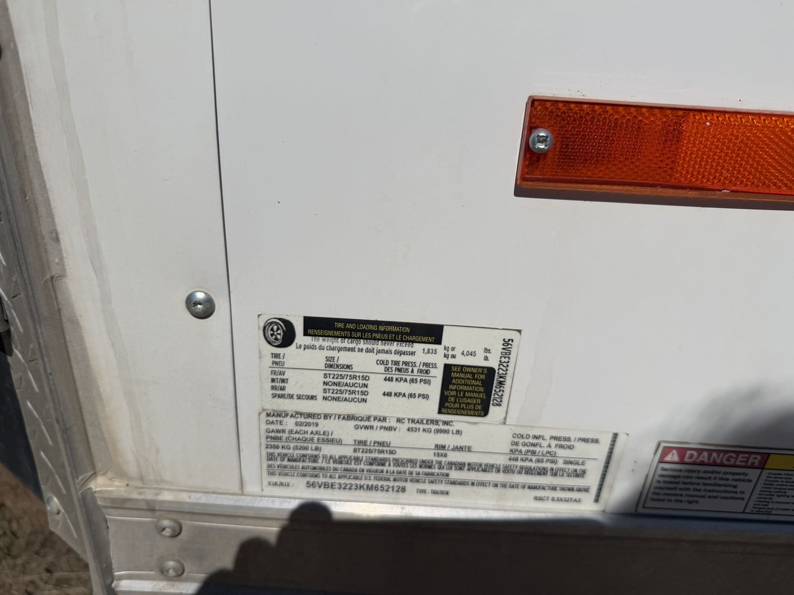 26' x 8' x 93" tall V nose.