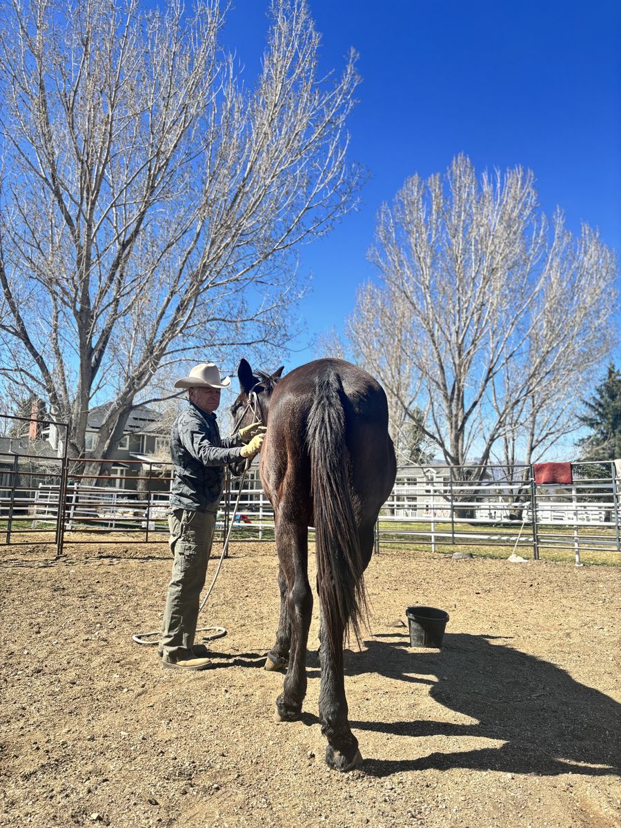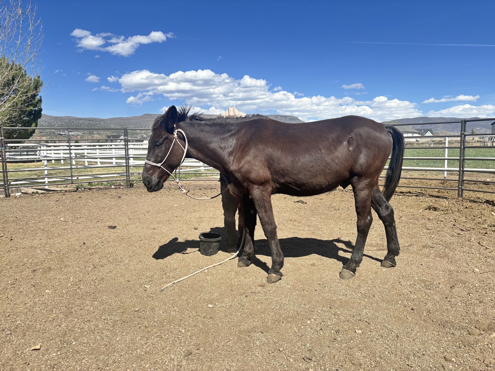 ZelleGreen broke 5 yr old John mule. Big, black and beautiful with lots of potential.