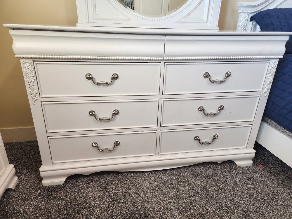 VenmoThis white 5 piece set is in good condition. minor wear and tear as we've had it for 11 years. Drawers still work as they should, guides, railes intact. Original cost for whole set was $1600.00 Asking $300.00. Box spring and Mattress not included.