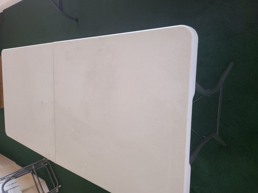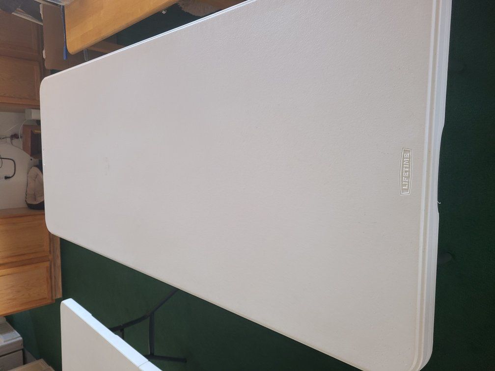 3 lifetime tables and 2 chairs 4ft 5ft and 6ft tables one is a fold in half table all for $70