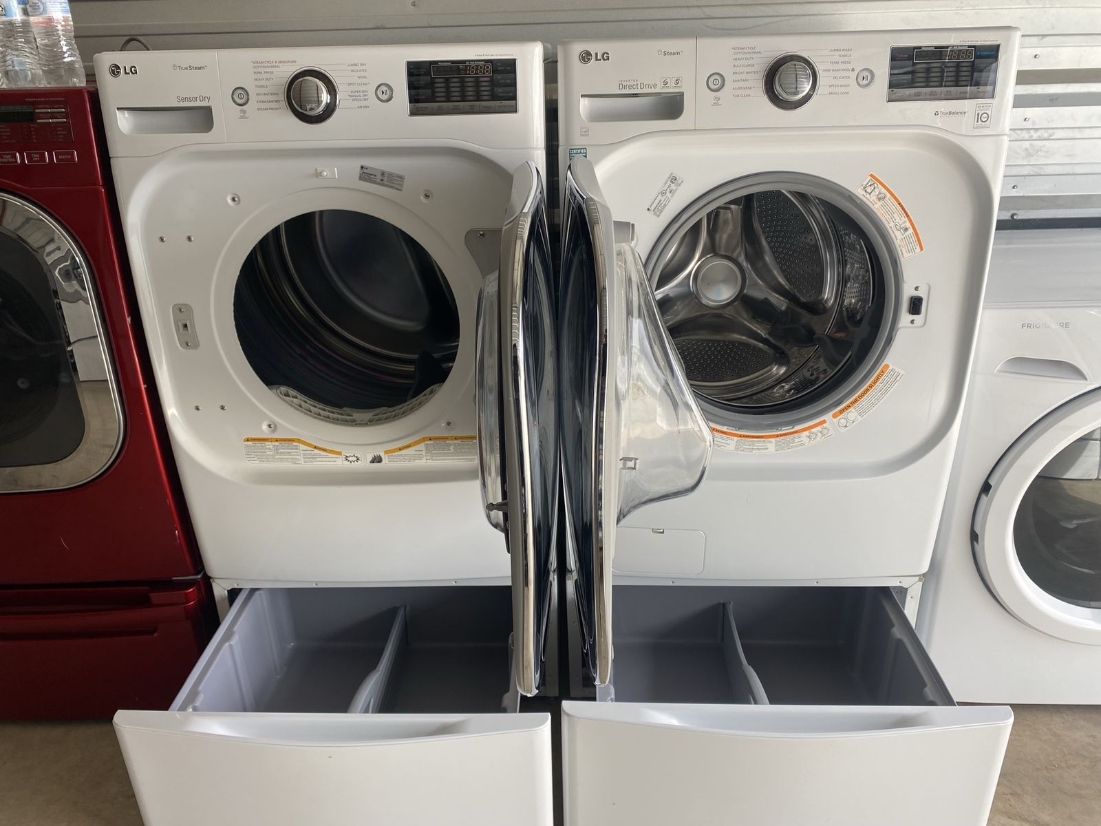 LG steam jumbo washer and gas dryer for sale. The washer has 14 cycles, 5 wash temps, 5 spin speeds, 5 soil levels and 5 signals. The dryer is a gas dryer with 14 cycles, 5 dry levels, 5 temp controls, 5 time dry and 5 signals. They are in very excellent working condition and are also a beautiful set. CASH ONLY. Call or text me at 435-538-0178