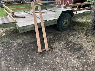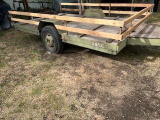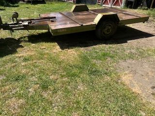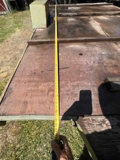 Just Call Me. 8x13 foot flat bed or removable 18" railing. 2 5/8 ball. I have hualed 6000 lbs of hay on this trailer. tows perfect. Makes a great Hay trailer or any heavy stuff. Has hand winch at front overall length 17.5 feet flat bed 13 feet. Lights work, has latch hooks on sides, goof tires.
