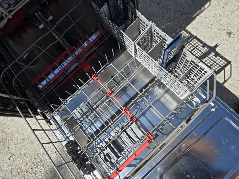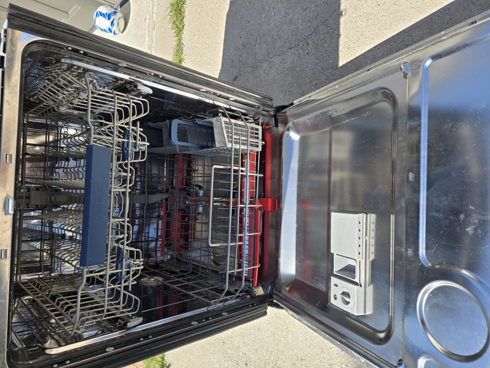 VenmoSamsung dishwasher. Top rack has some prongs that are breaking down, and there are some scratches on the front.