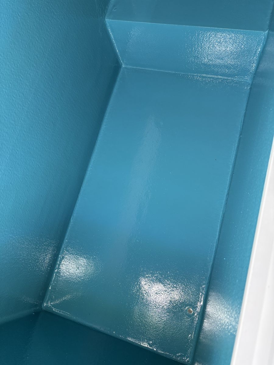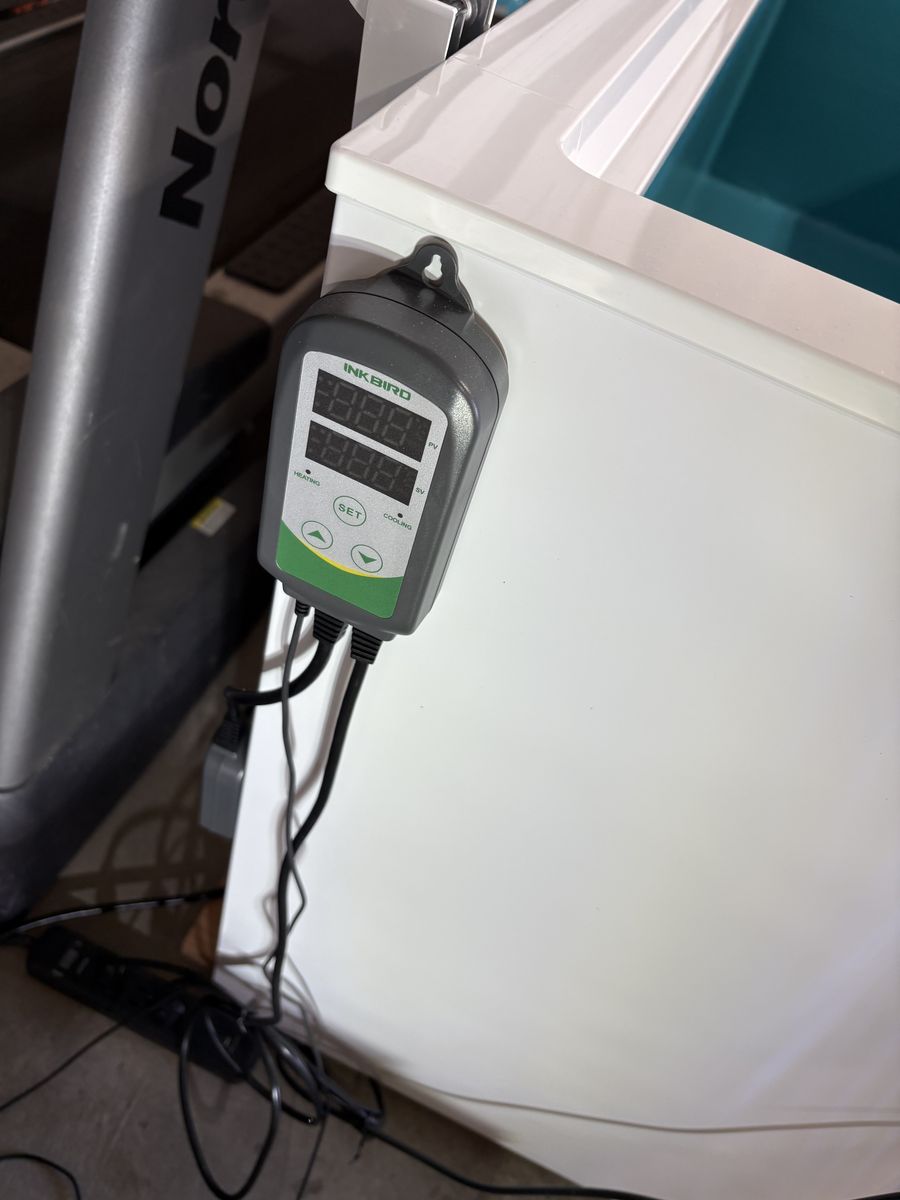 14 Cubic Foot Ice Bath. I am 6,3 and fit well. Has thermostat to keep the temperature you want.