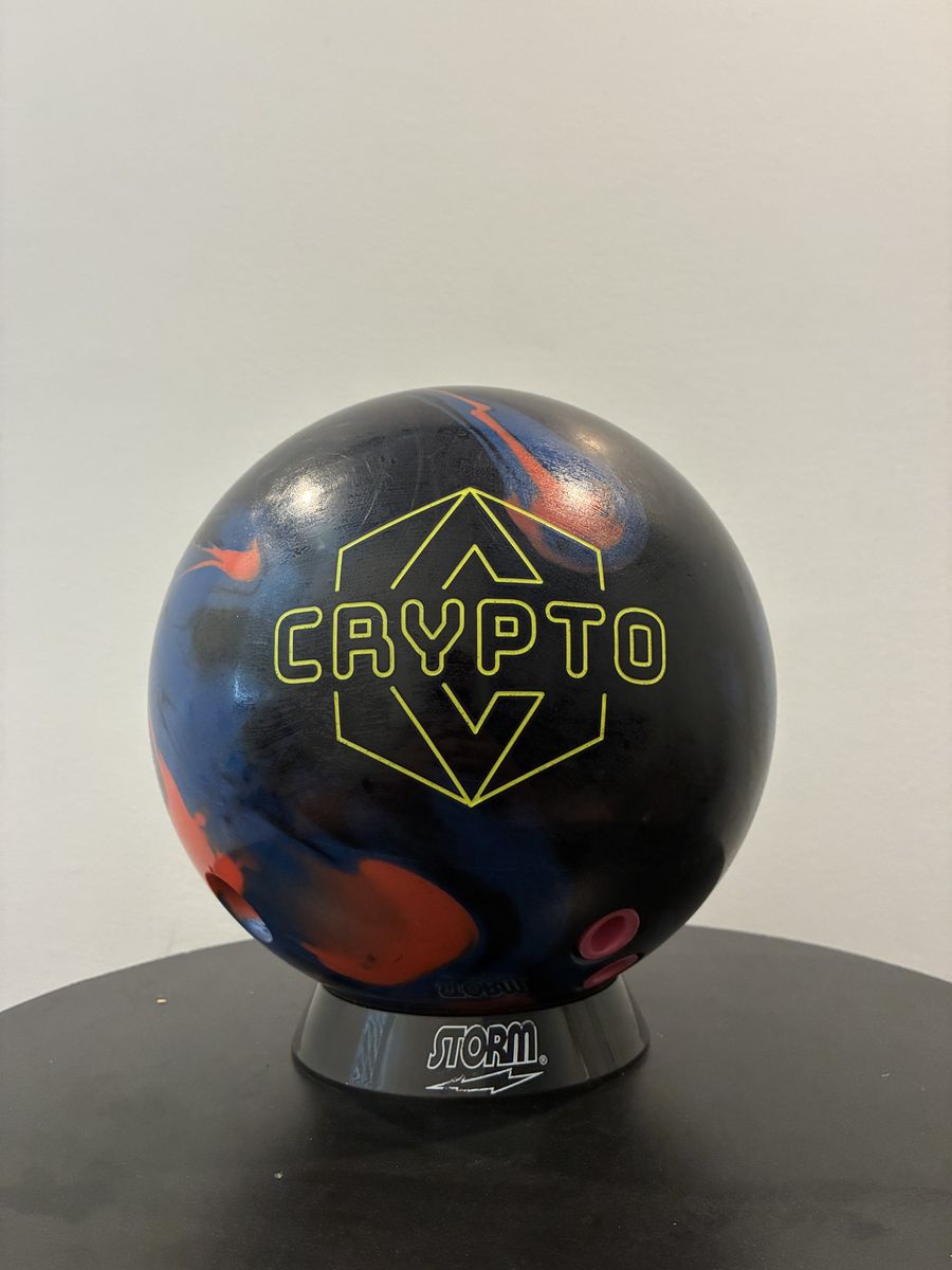 ApplePayRadical Crypto bowling ball. The ball was drilled for a girl, small finger holes. Easily replaceable. The ball was recently polished and resurfaced. Trades are welcome