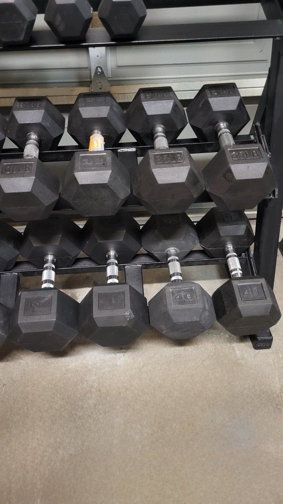 556 pounds of dumbbells,from 8 pounds to 50 pounds in 5 pound increments, selling for $500 cash,rack is not included if you want the rack it could be sold separately for $50 cash,thanks for looking