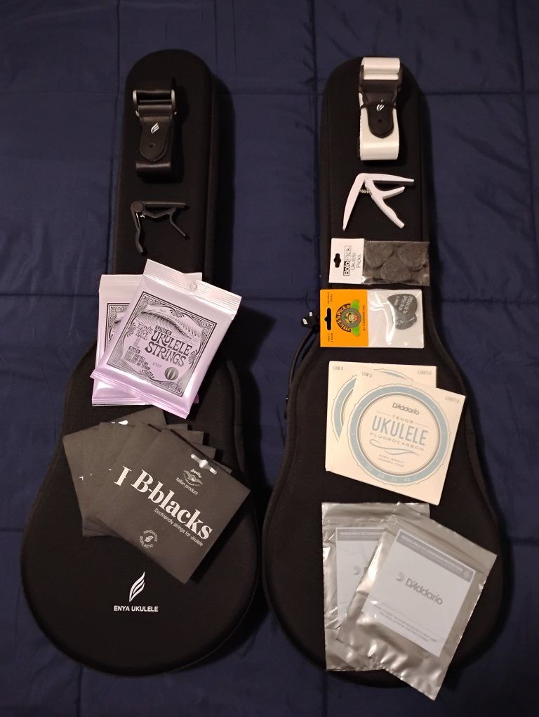 VenmoBuy 1 Ukulele, get another for free! These are Enya Carbon Fiber Tenor Ukuleles that are slightly used but still in perfect condition. I've been too busy to play them and they're basically wall ornaments at this point. I would like to give them to someone who will enjoy them more than I can. Each Ukulele comes with a case, capo, strap, Ukulele picks (felt material), wall mount hangers and several packages of new strings from different manufacturers. I was experimenting with different strings and wanted a surplus to have on hand. I spent quite a bit on all the strings but they will be included in this bundle deal. Only asking $100. DON'T MISS OUT ON THIS DEAL!! Please text Ryan @ 385-255-6629 if interested. Cash or Venmo