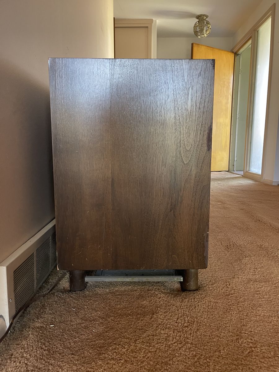 VenmoThis is a beautiful piece of furniture. Dark stain with gold hardware. Four doors and shelves inside. Small scratch and corner fix are really the only imperfections. (Pictured) Asking $60