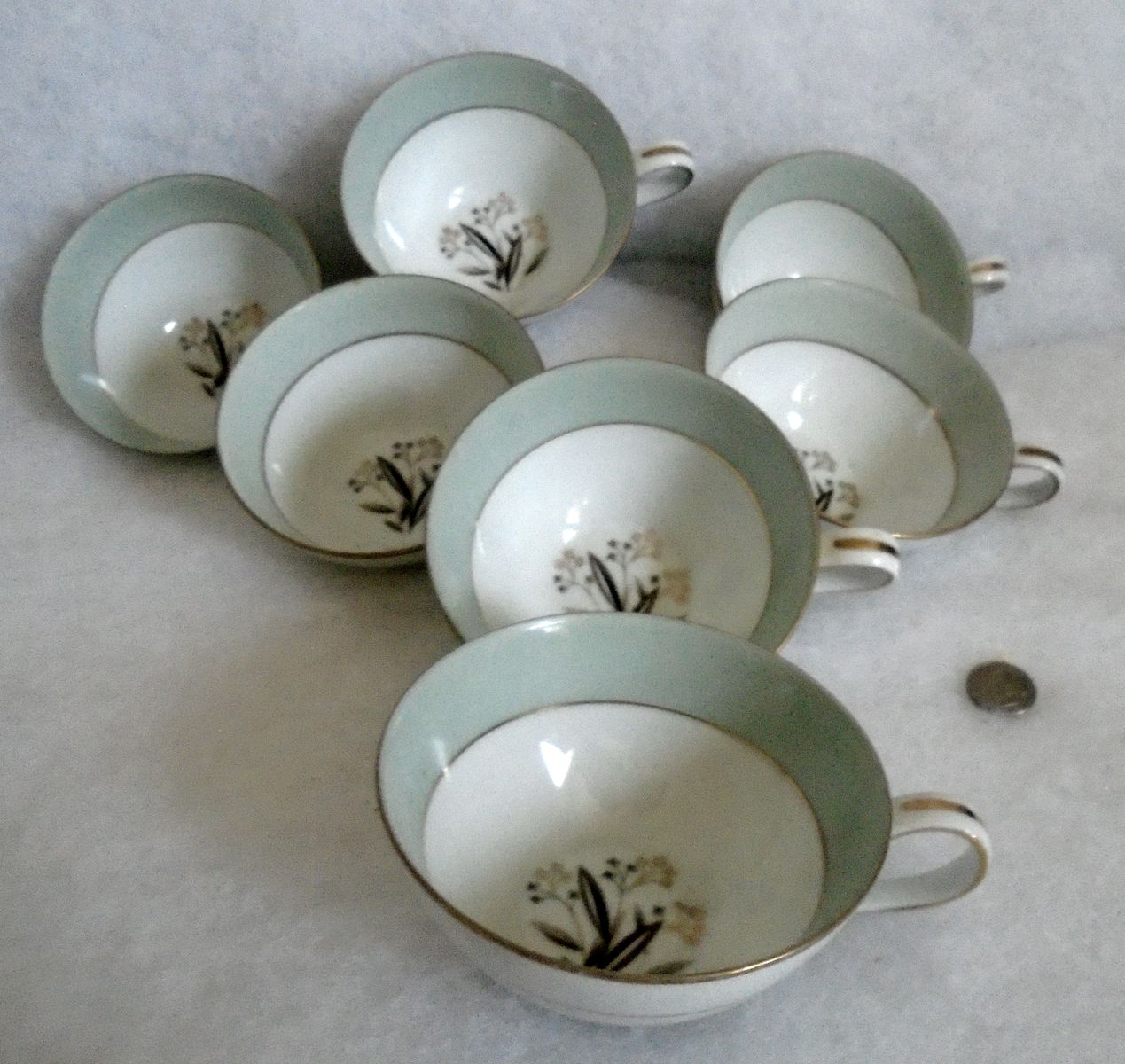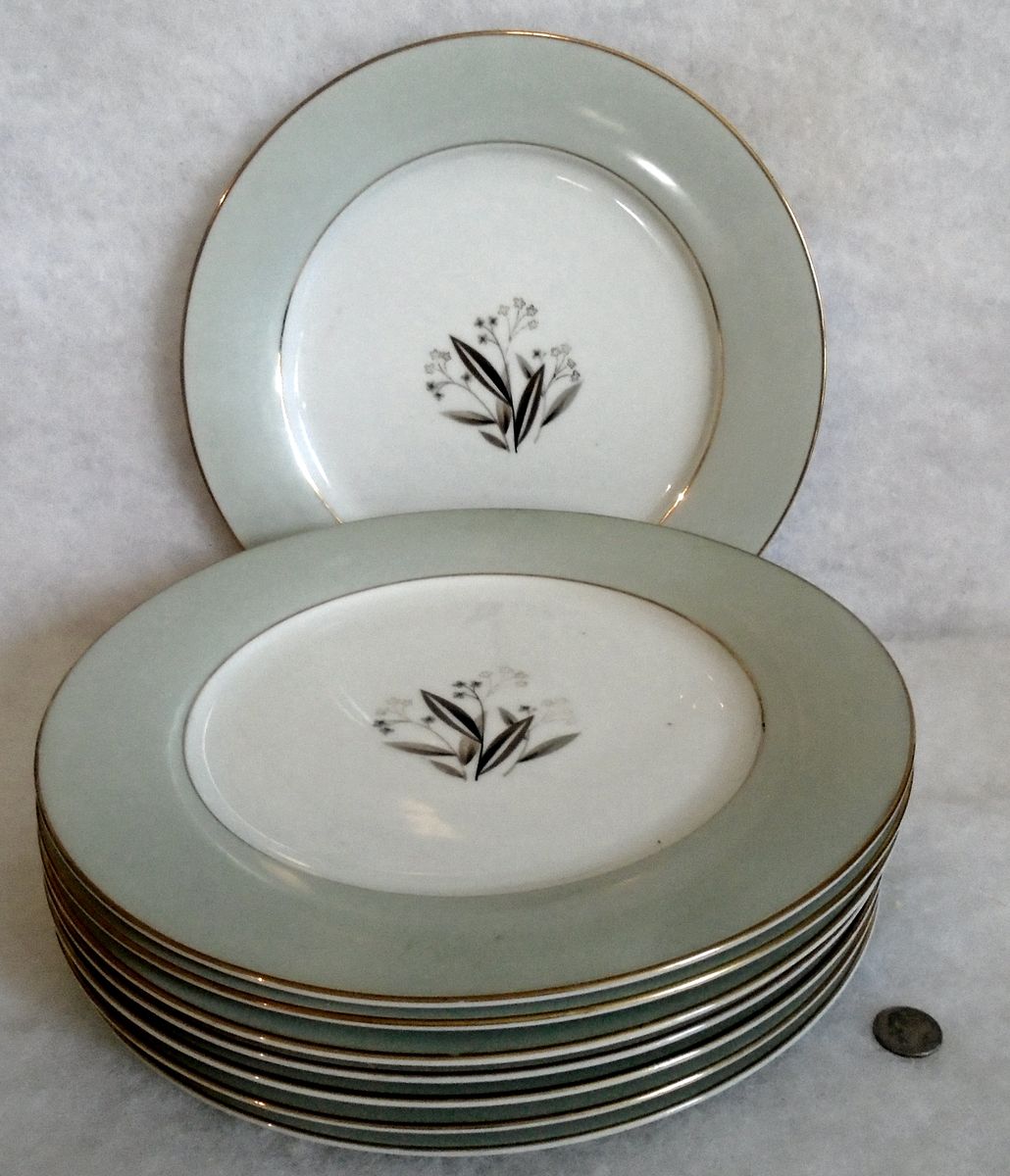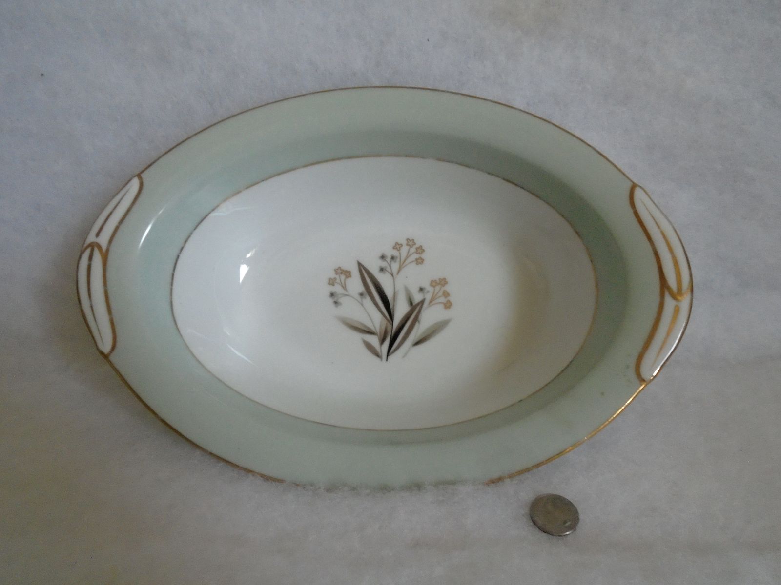 NORITAKE CHINA (5544) CARLISLE Dinner Set/Serving Ware Set Made in Japan VINTAGE SET OF A TOTAL OF 49 PIECES PRODUCED FROM 1954-1959 in a White/Mint Green Color with Gold Trim and Floral Print in Center!!