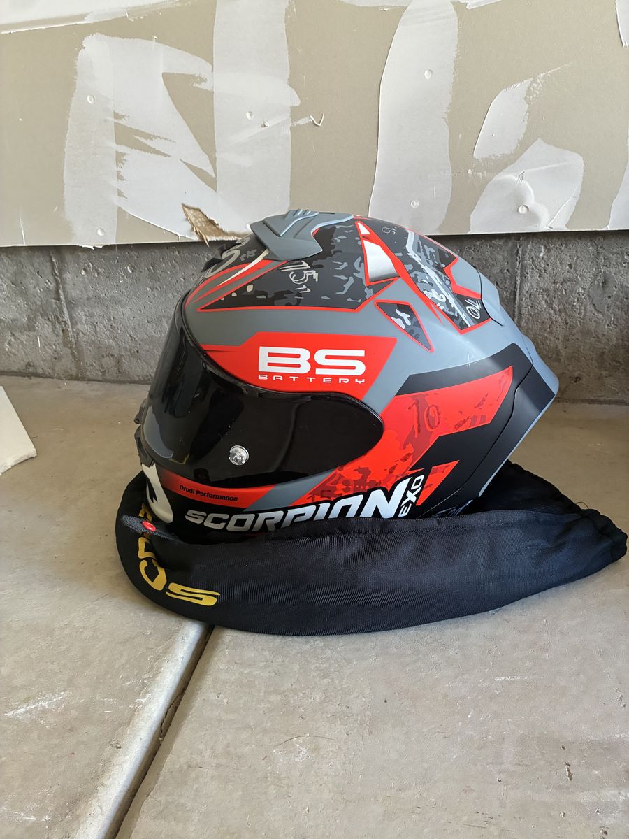 Meets DOT specs, exchangeable visor (clear and black come with this helmet). Never gone down in, worn for approximately 40 rides.