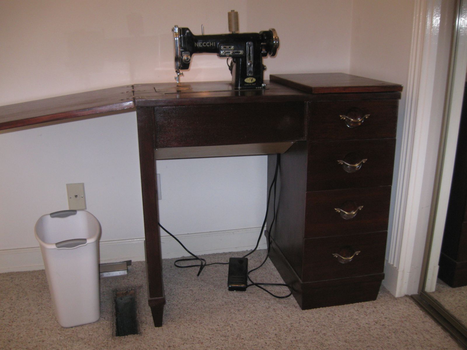 Necchi VN all metal sewing machine, in a 4-drawer beautifully restored cabinet. Machine does straight stitch, reverse and zig-zag. $199; Salt Lake pickup and C A S H only.