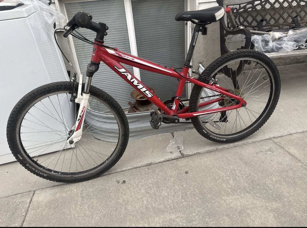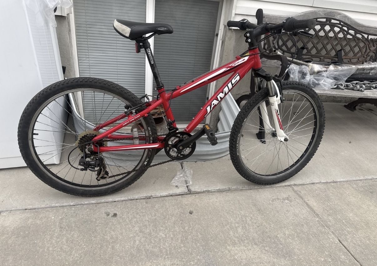 This Bike is still in good condition still in good shape , both tires hold air, tire size is 24, pedals are good , chain is good , seat is good, aluminum frame is still solid and has no cracks, Brakes work great and shifters work great , 7x2, 14 speed Front suspension works great and rides smooth