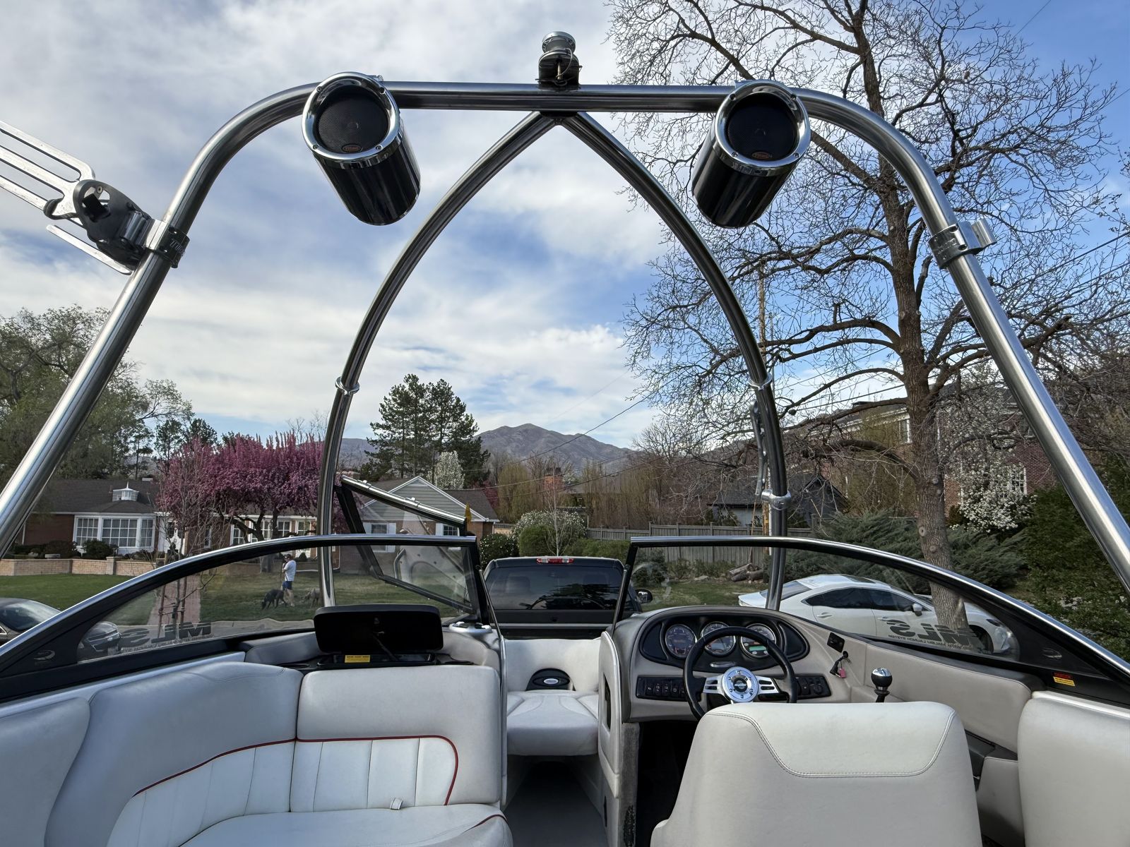 The standout feature is the 8.1L 496 Vortec Big Block Engine! At Utah altitudes, this extra torque is a game-changer, allowing the boat to get on plane effortlessly, even when fully weighted for surfing or carrying a large crew.
