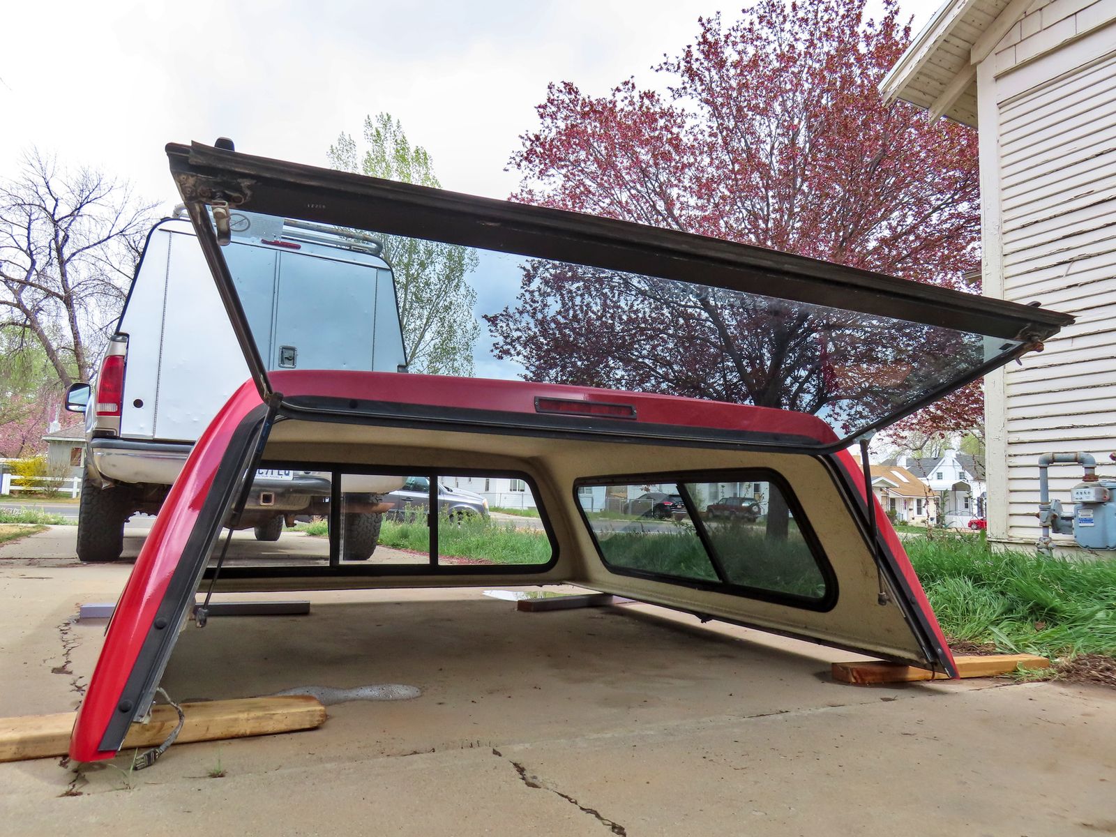 This camper shell was installed on a 2003 Ford F-250 Super Duty short bed but will fit other years and possibly other makes and models. It's in great shape, no damage except for a few very minor scratches (see photos). All glass is intact. It has a 3-pin plug for the brake and interior light but I never hooked it up so I'm not sure if they work, but we can test it if you want. Located in Price, Utah.