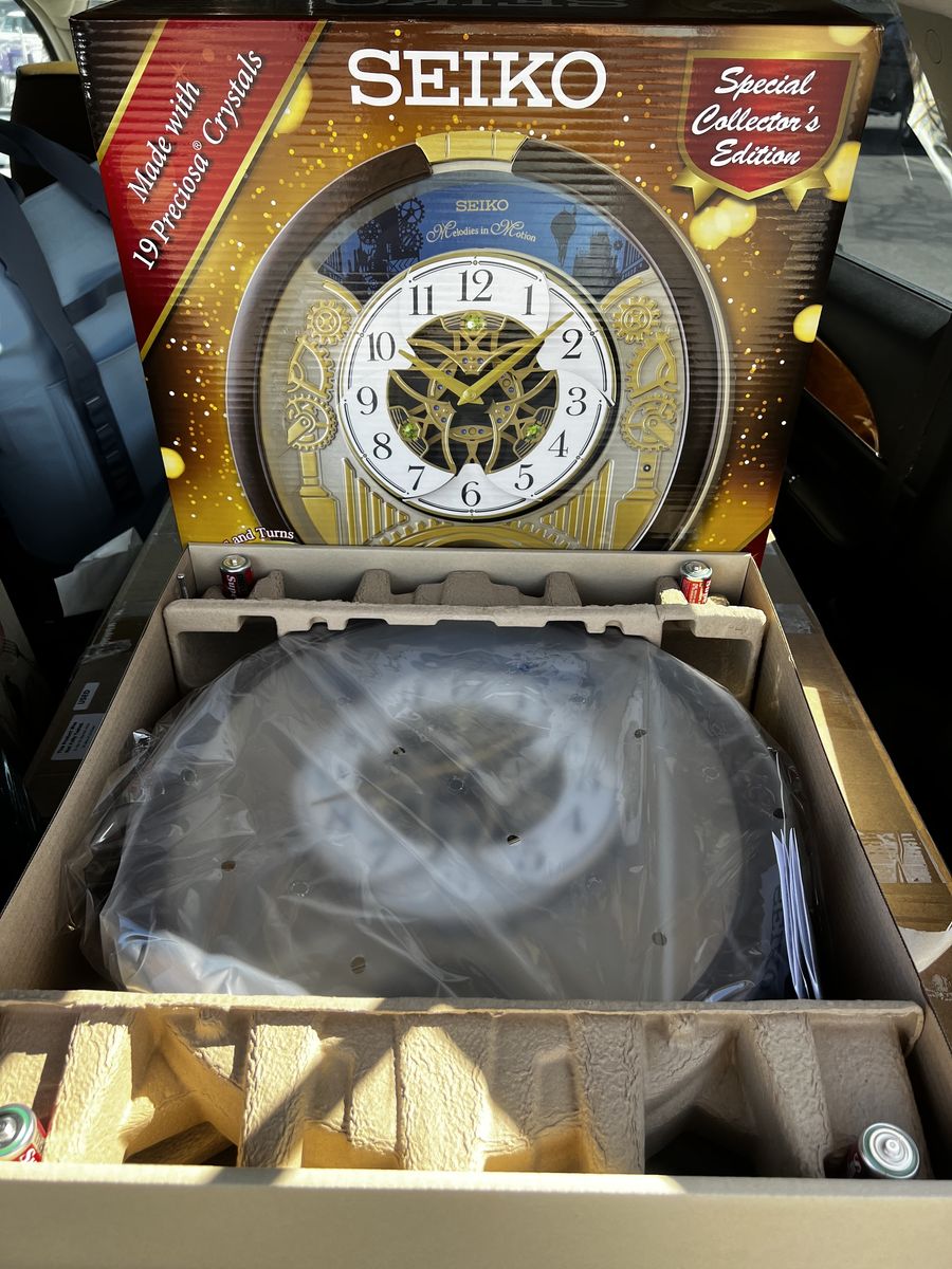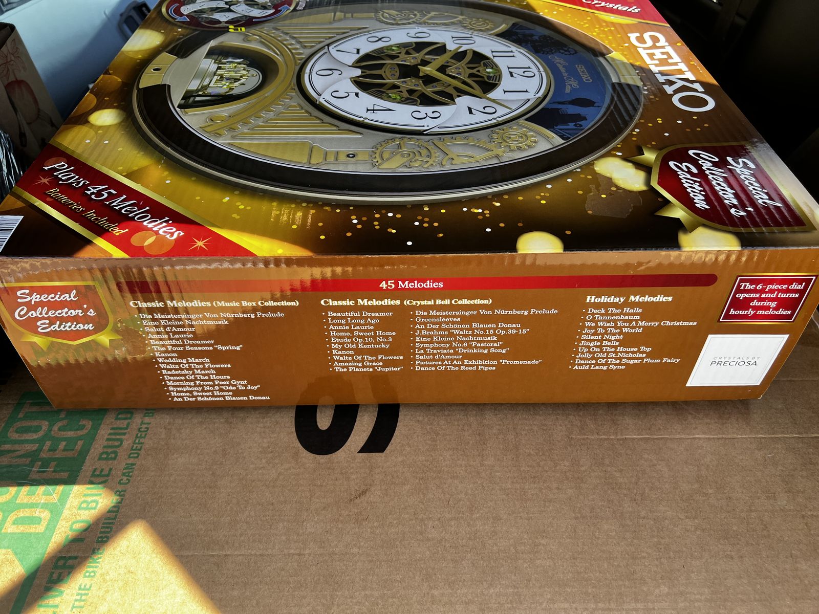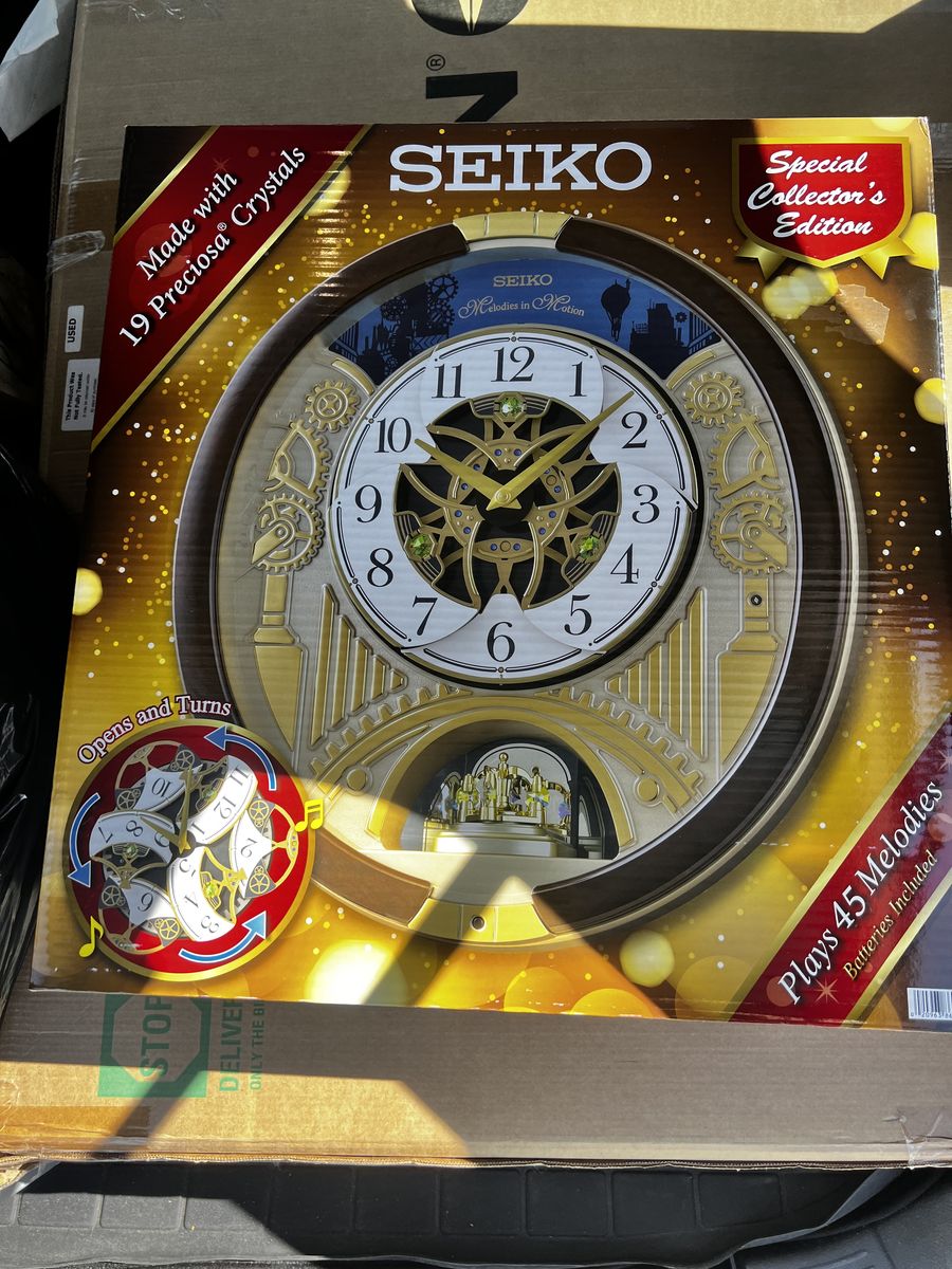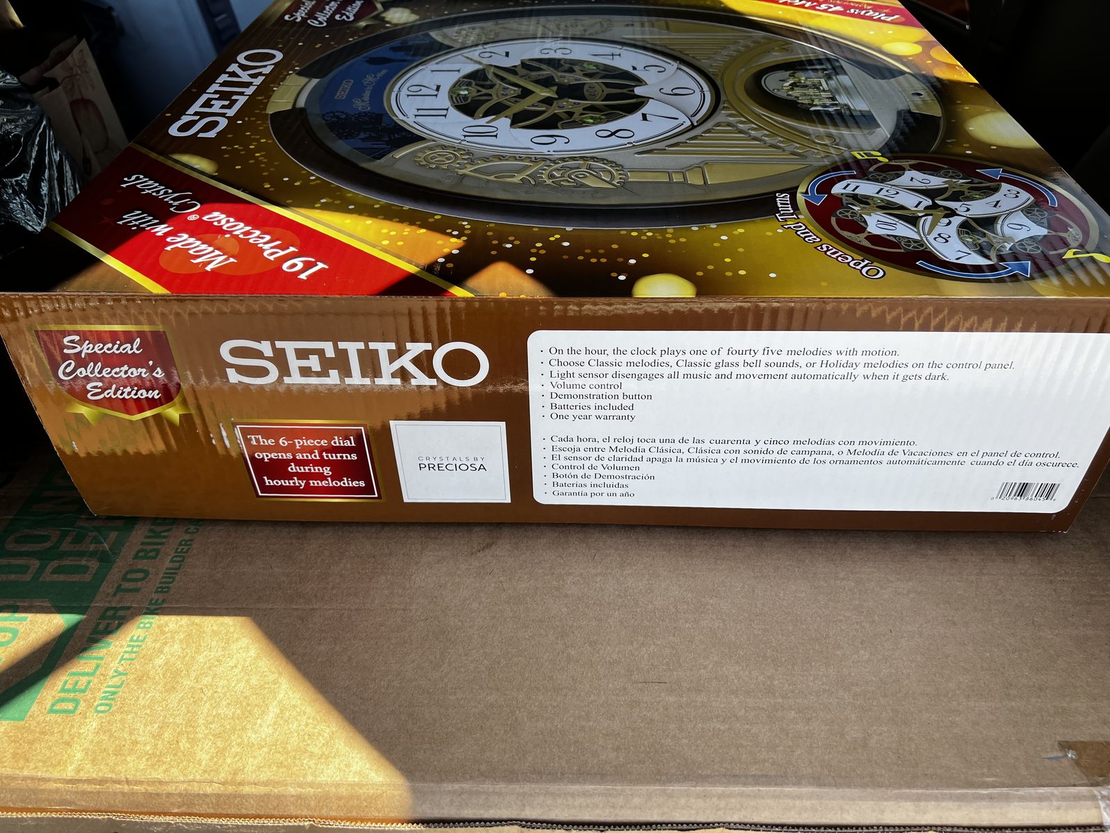 This is brand new and made by Seiko, it is a wall clock makes music and turns while also functioning as an actual clock telling time. This was a gift to me and originally goes for 360 dollars.