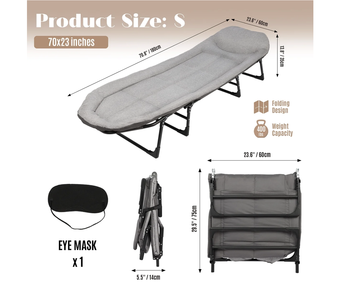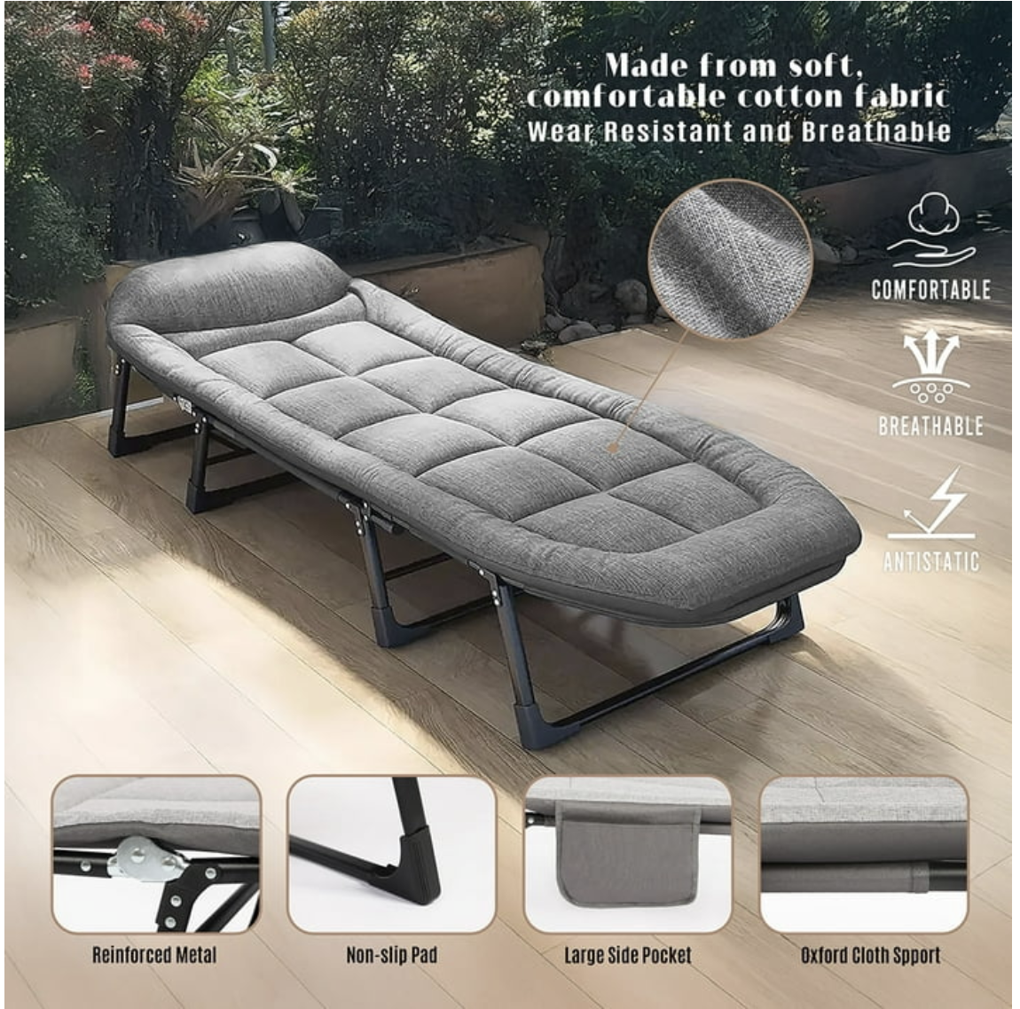 Brand new in box, Camping Cot with Cushion,, Portable Folding Lightweight Bed