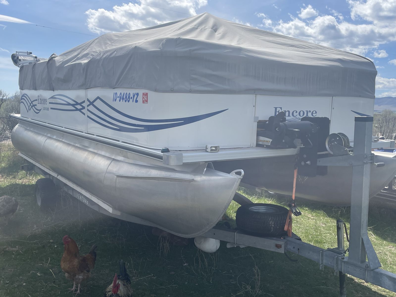 Key Features & Upgrades: • Motor: Mercury 60HP Bigfoot – High-torque model designed specifically for pontoons. Reliable and runs great. • Trolling Motor: Minn Kota Terrova 80 lb Thrust (24V). Features Spot-Lock (GPS anchoring), i-Pilot, and wireless remote. • Electronics: Lowrance 7" Touch Screen Fish Finder with SideScan imaging and RAM mount. • Fishing Ready: Equipped with RAM Mount adjustable rod holders. • Trailer Included: Comes on a sturdy trailer with new LED lights, and good tires. It’s road-ready for your next trip.