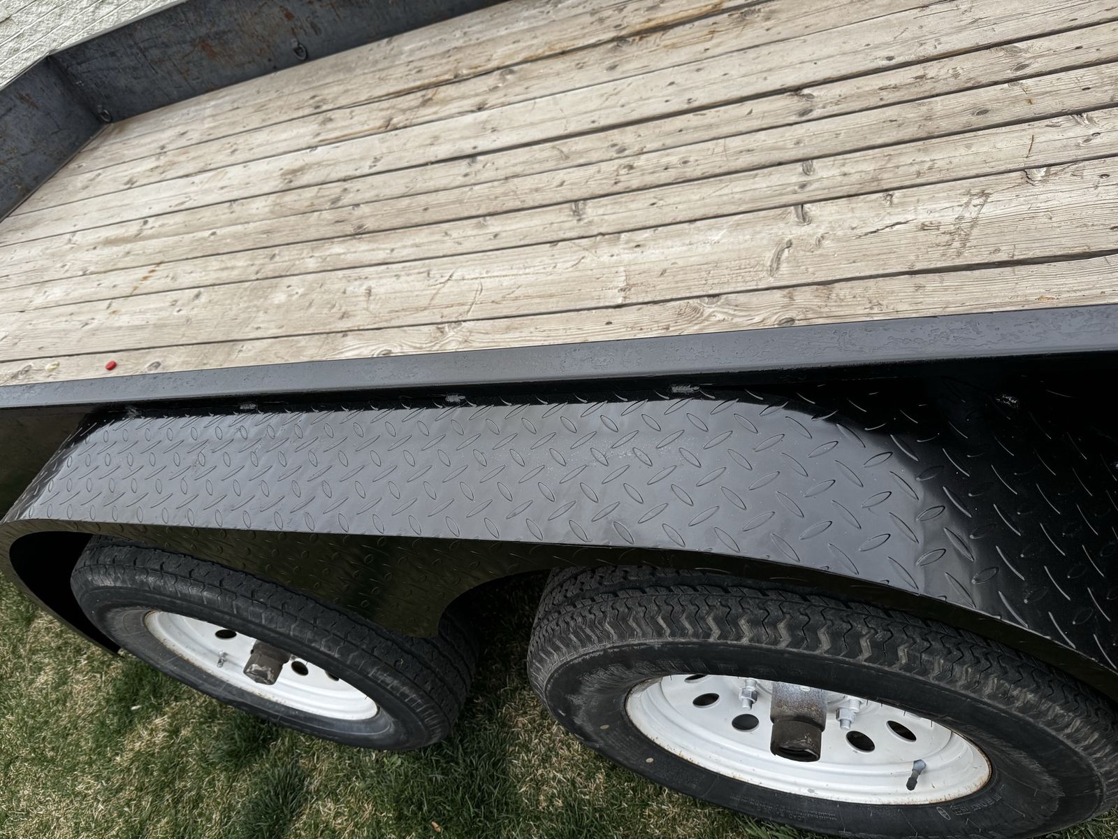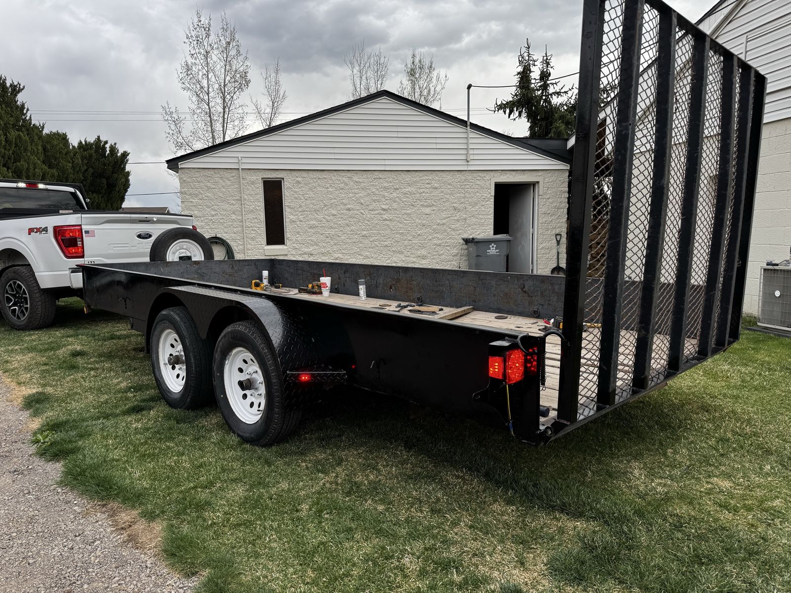 VenmoNice trailer, haul your toys or yard work items. 12” full solid metal sides, great tires, new diamond plate fenders, new taillights and marker lights. 2-5/16 ball. Rear ramp also lays down on deck to get out of the way if needed or hauled up or down. Wood planks in good shape with fresh oil. D-ring hooks welded on the inside sides, j-hooks bolted on the outside. Dual axle for 7k payload. Clear clean title in hand, cash or Venmo.