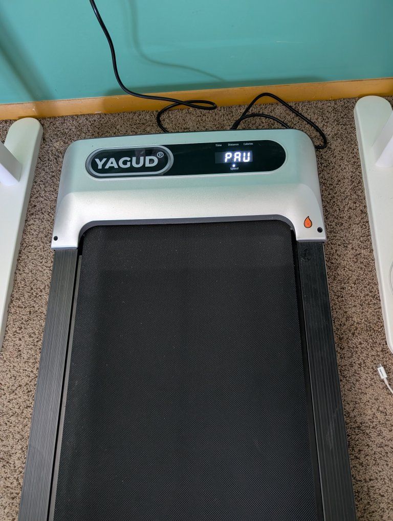 VenmoAt home walking pad/personal treadmill. Purchased in July 2024 and used for about a year a few times a month. Great working condition, belt has been regularly oiled. Comes with power cord, remote, manual, 2 bottles of conditioning oil, new remote battery. Holds up to 265 lbs, speed goes up to 3.8 mph. Motor is 2.5 HP. Rolls on wheels to store under a bed easily.