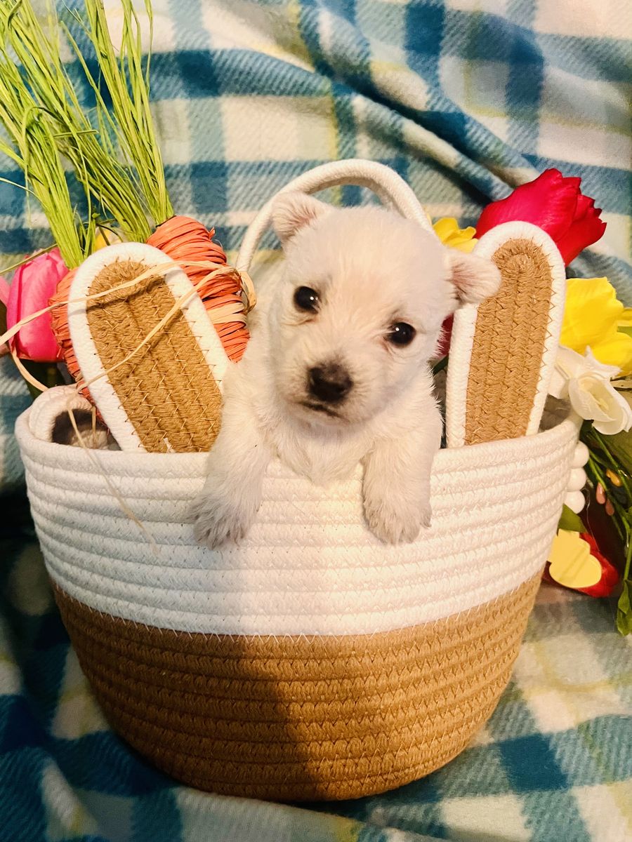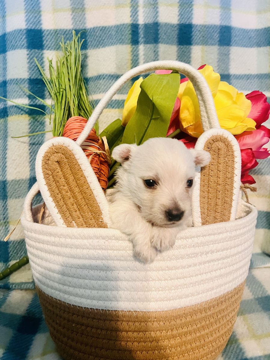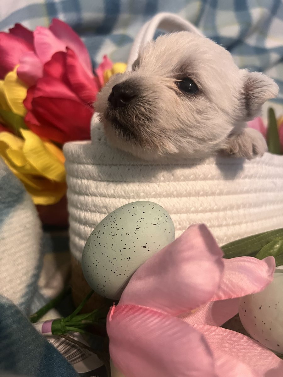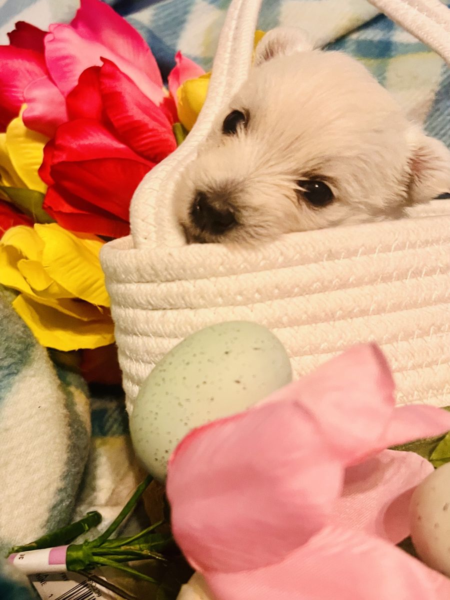 VenmoWe have seven W. Highland White terrier (Westies) that are four weeks old today. They will be ready right around Mother's Day. They are beautiful puppies and are growing very well. they are playful and friendly and being socialized with a great family.art AKC registered. I can give you information on why if you are interested. We are asking. $1300 for females and $1000 for males. We have four females and three males. Puppies will come with first shot and deworming.
