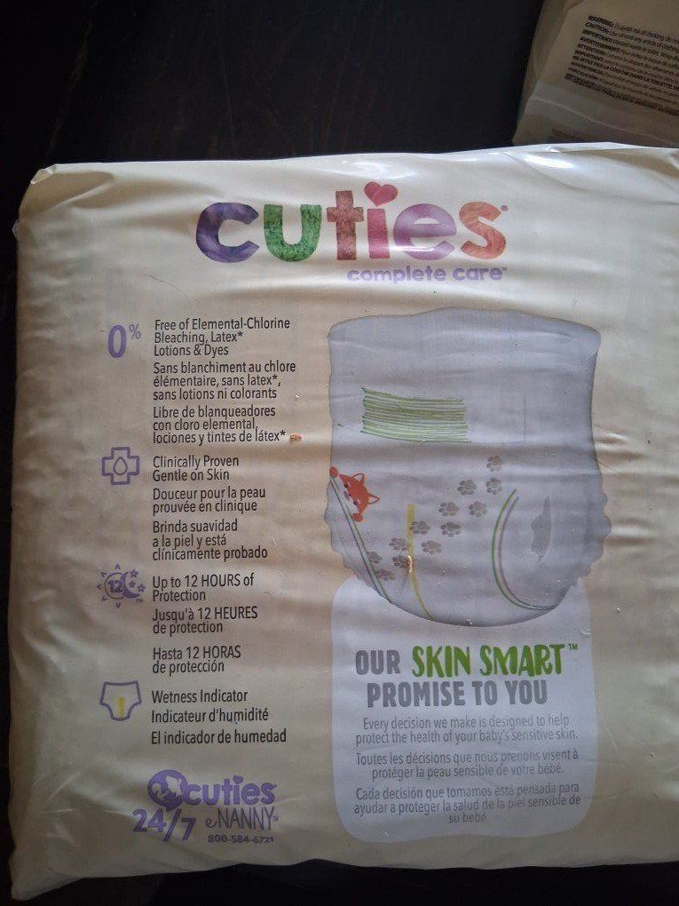 Cuties size 4, 31 count diapers 22 to 37 lbs. 15 packs available. Will negotiate cost on multiple packs purchased.