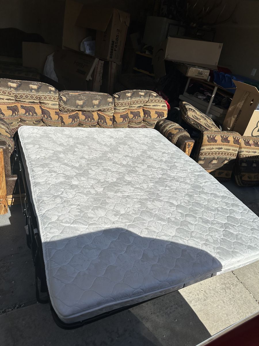 Couch with pullout bed. Comes with mattress and ottoman. $200