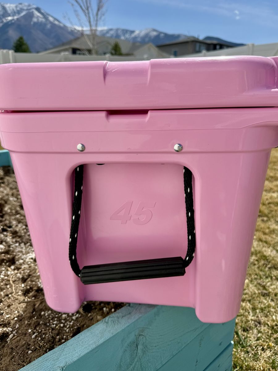 ApplePayRare limited edition breast cancer awareness Yeti 45 tundra hard cooler. Excellent condition. One bottom corner has a couple of scratches see photos. The serial number is still on it and can be registered.