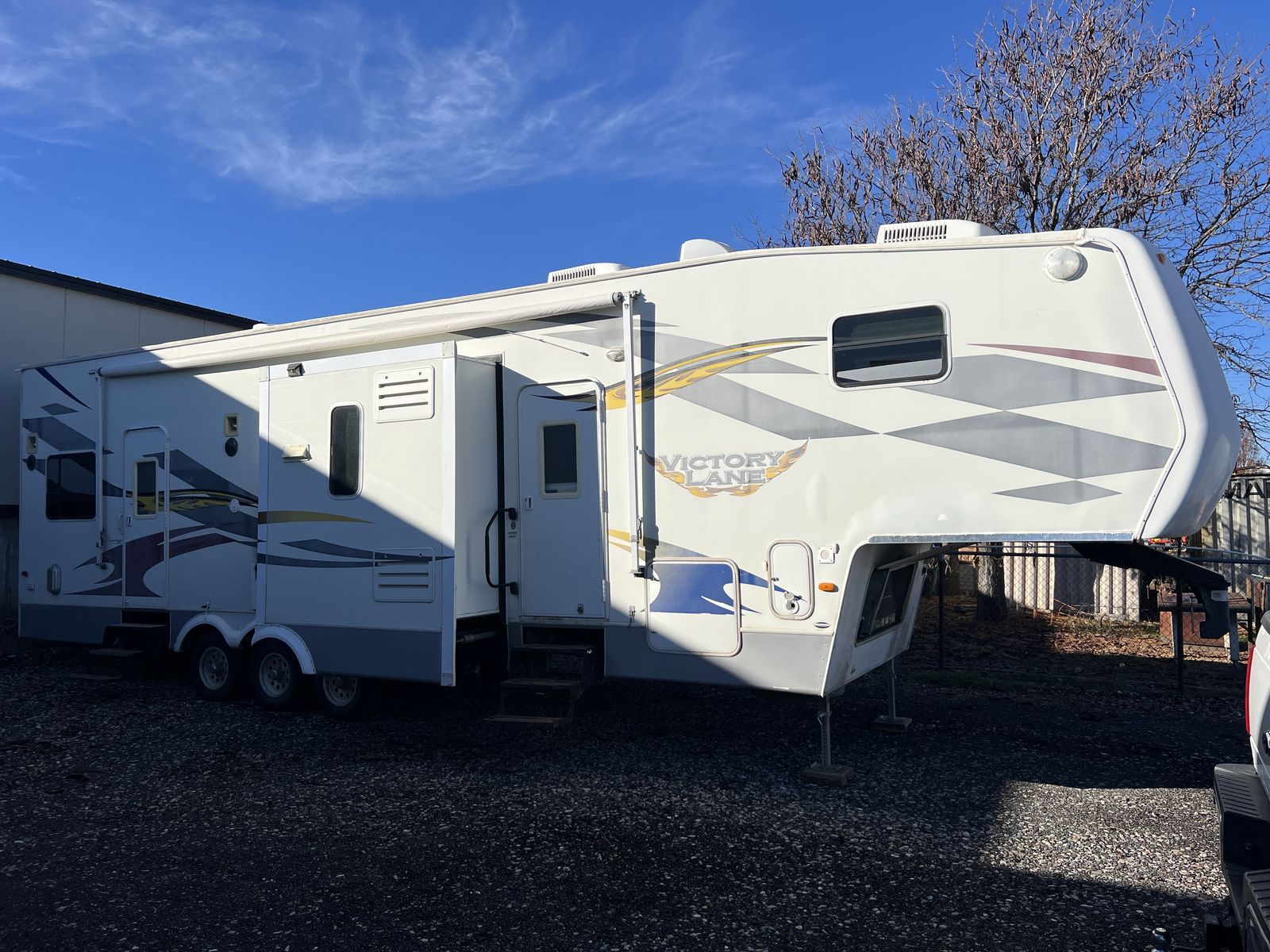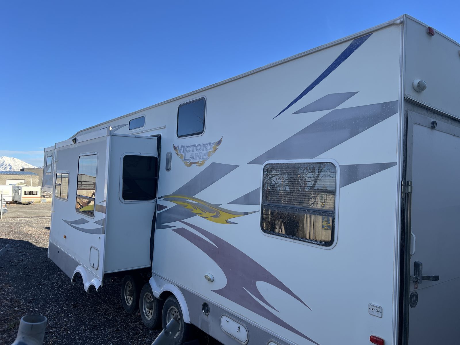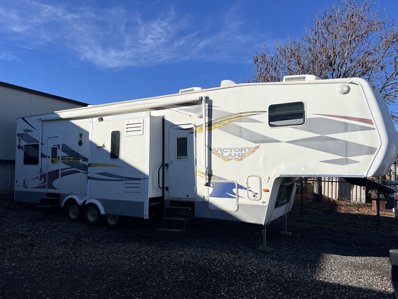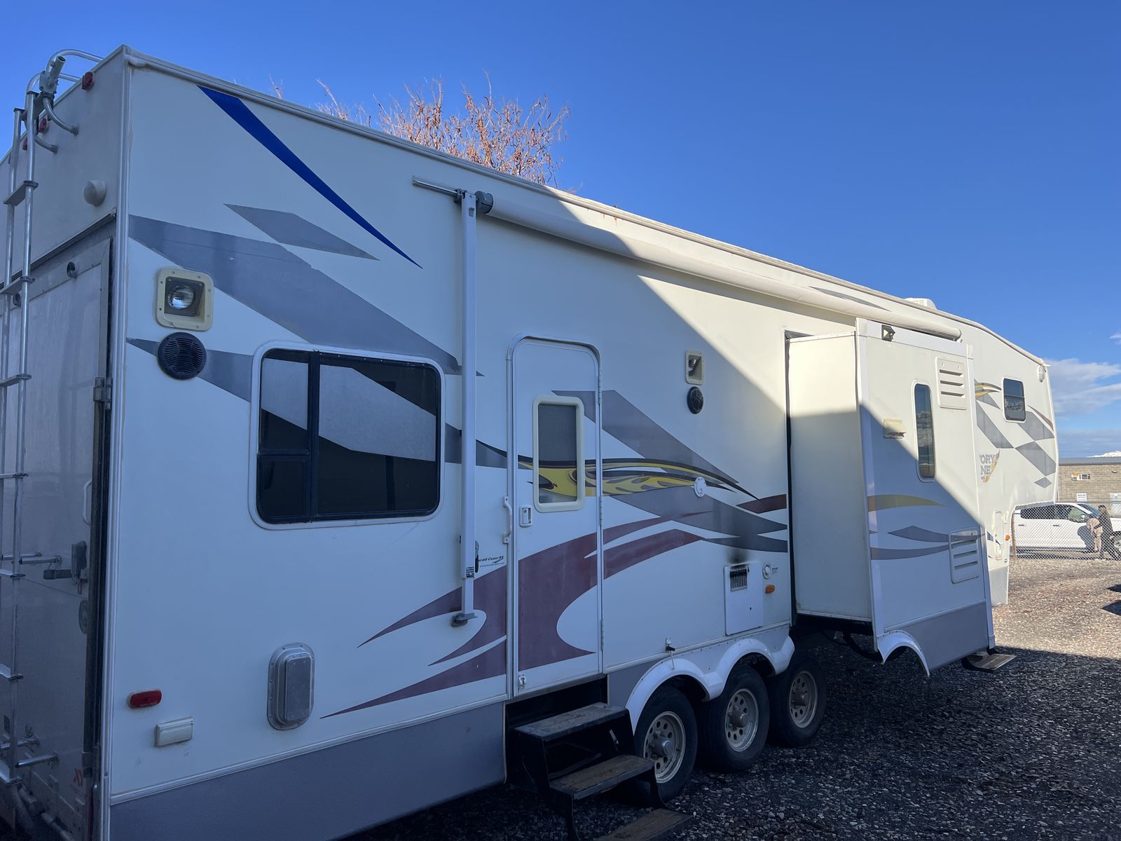 3 slides. Heavy duty commercial roofing 1 1/2 yrs old. New awning last year. Tires in good shape. Wheel bearings packed. 12’ garage. Fuel station. Tires in good shape. Generator works great. New batteries last year plus master disconnect switch.