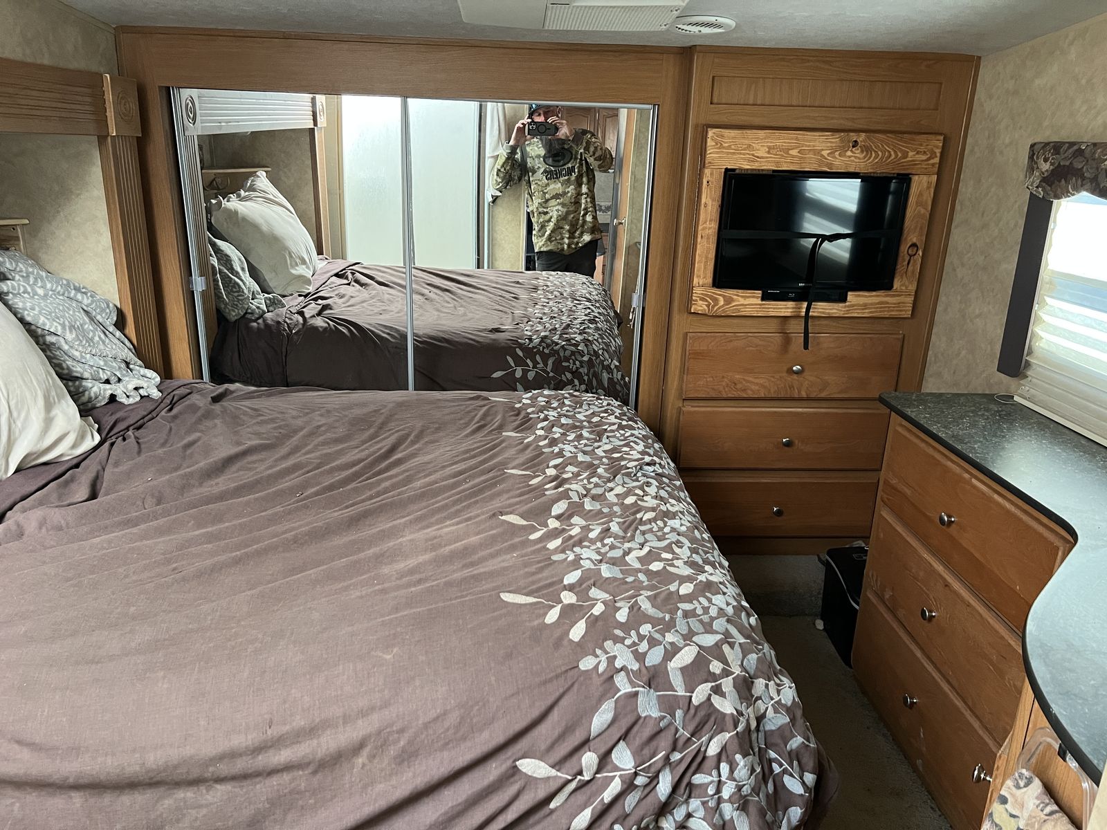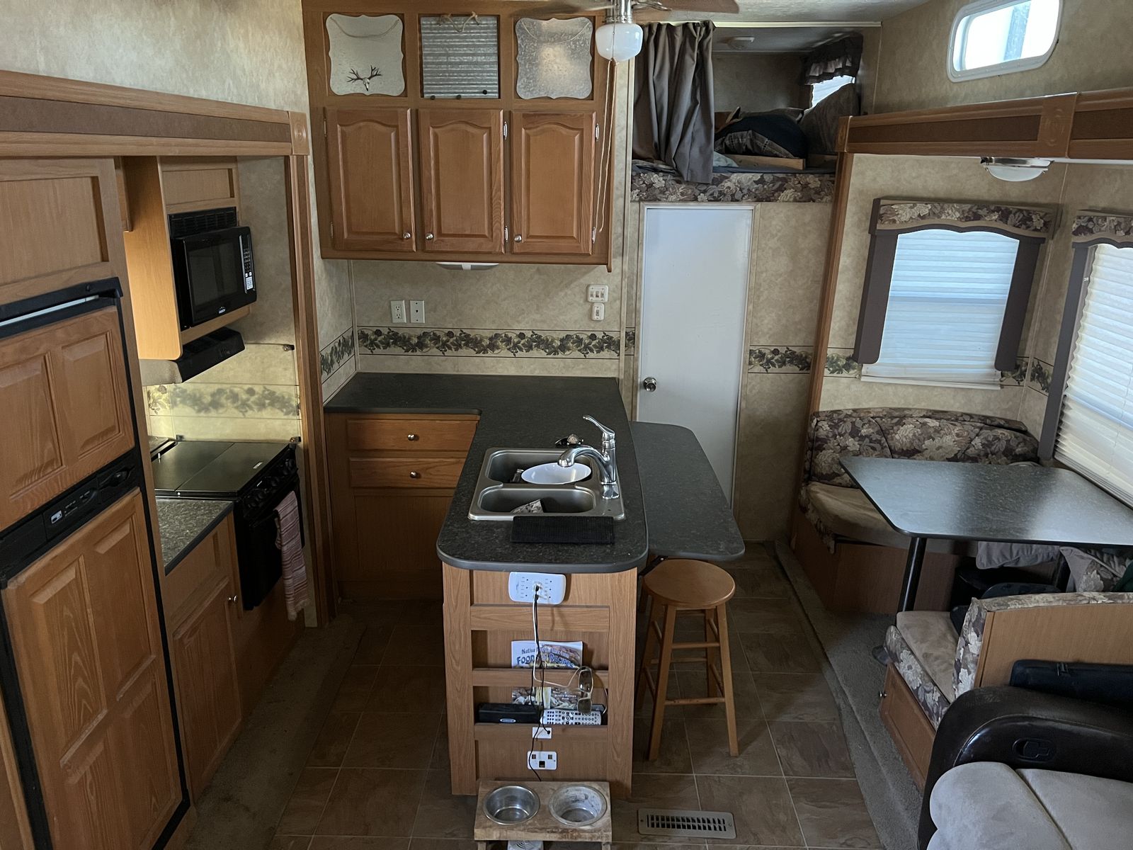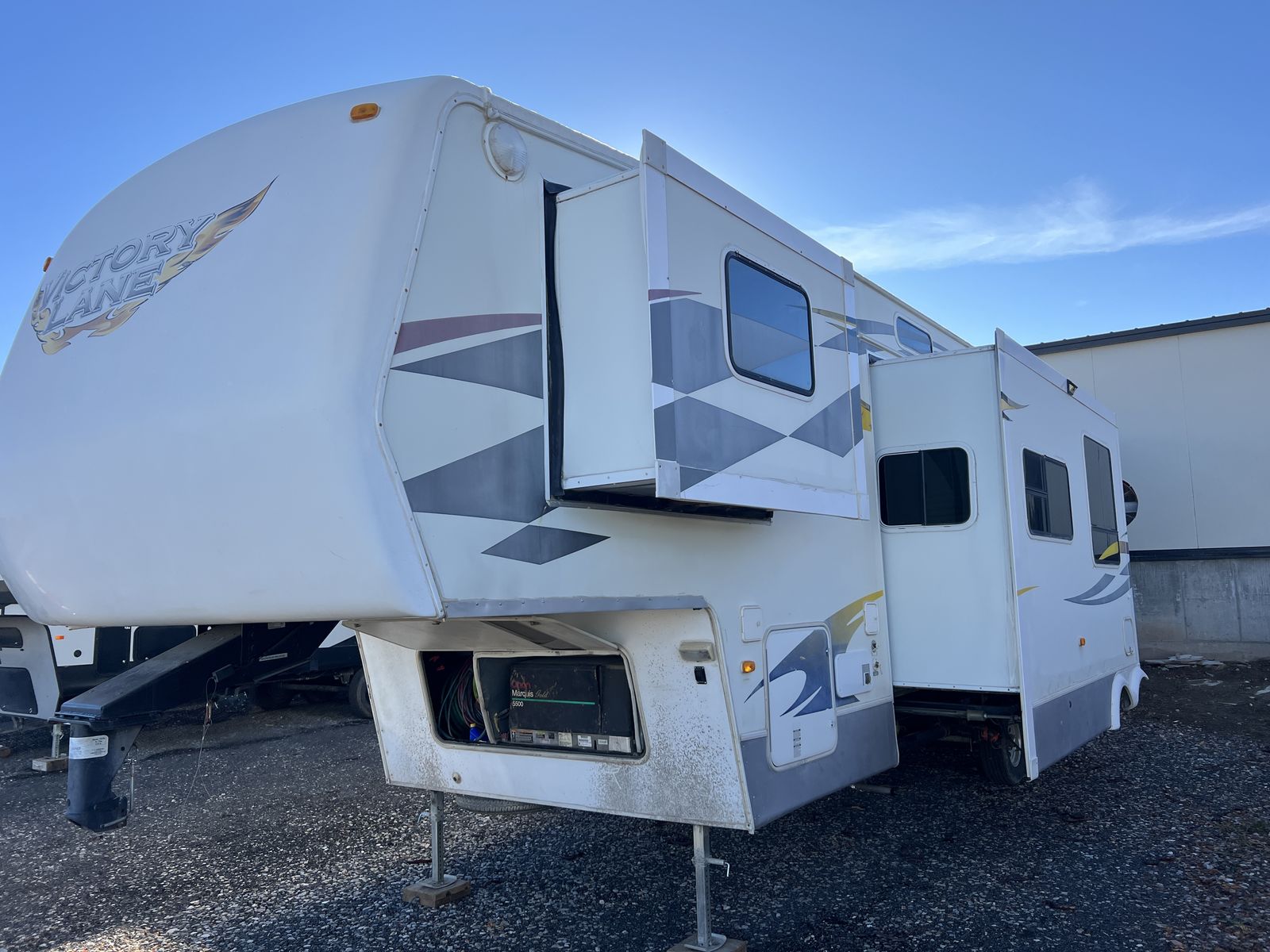 3 slides. Heavy duty commercial roofing 1 1/2 yrs old. New awning last year. Tires in good shape. Wheel bearings packed. 12’ garage. Fuel station. Tires in good shape. Generator works great. New batteries last year plus master disconnect switch.
