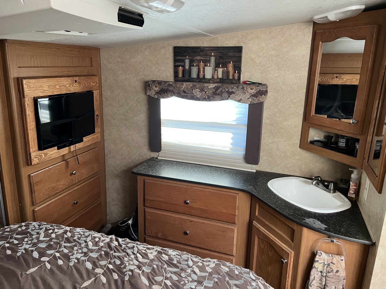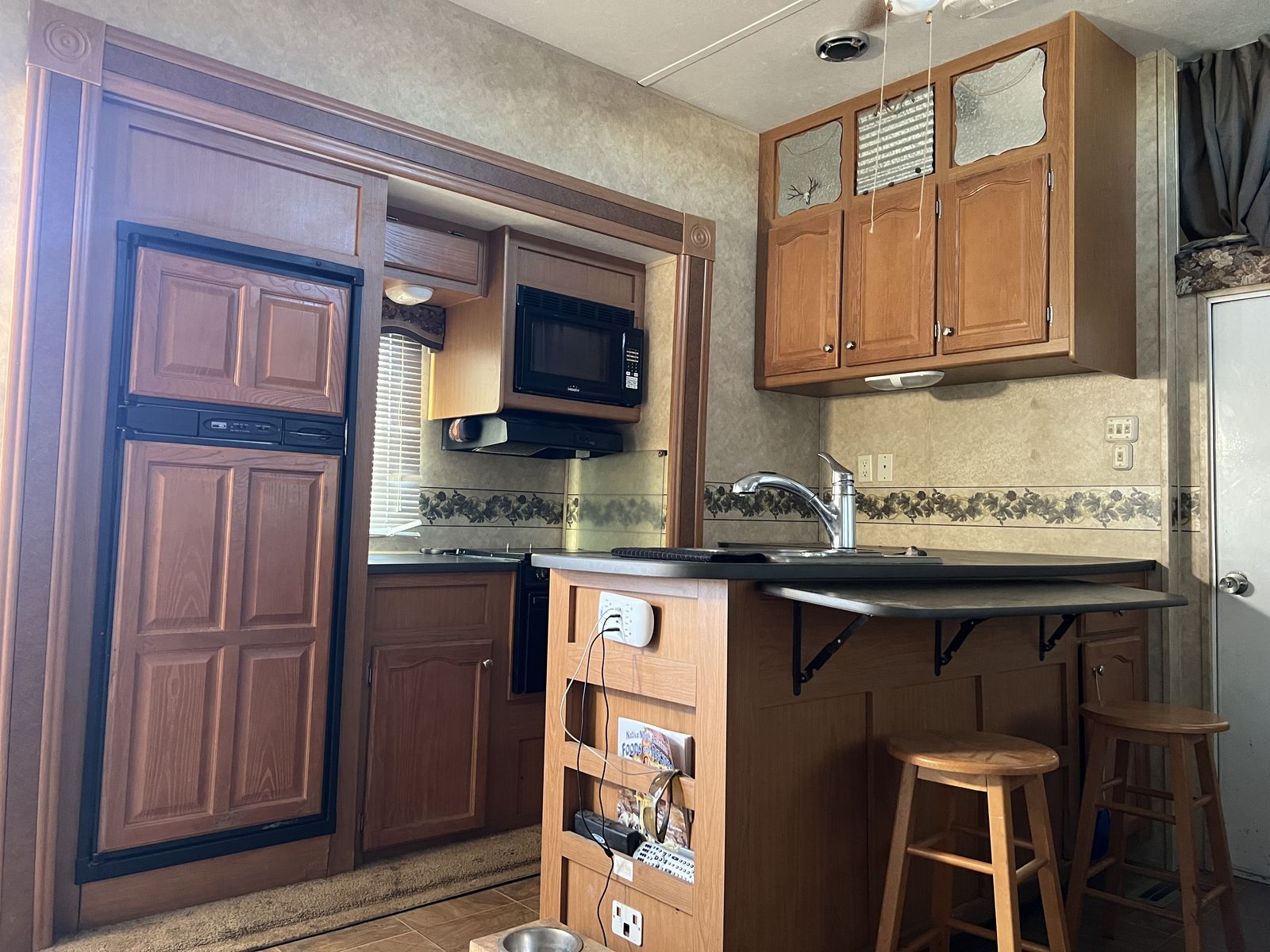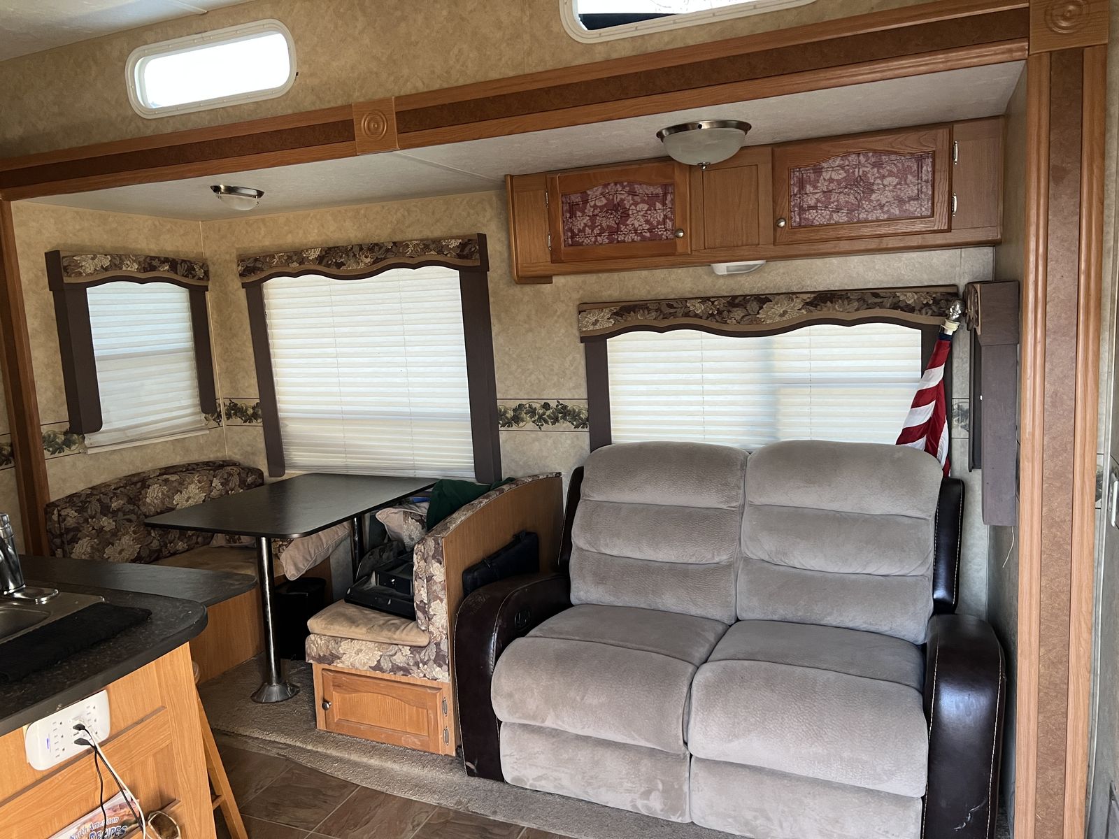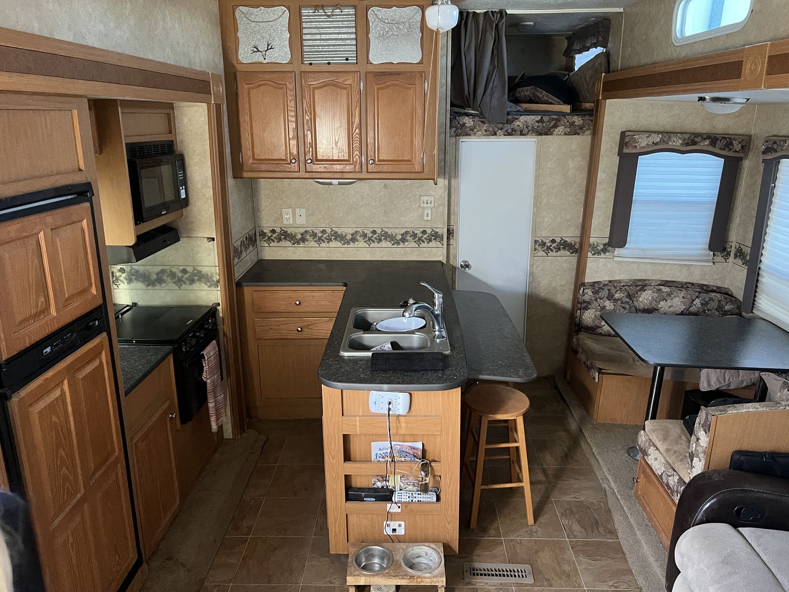 3 slides. Heavy duty commercial roofing 1 1/2 yrs old. New awning last year. Tires in good shape. Wheel bearings packed. 12’ garage. Fuel station. Tires in good shape. Generator works great. New batteries last year plus master disconnect switch.