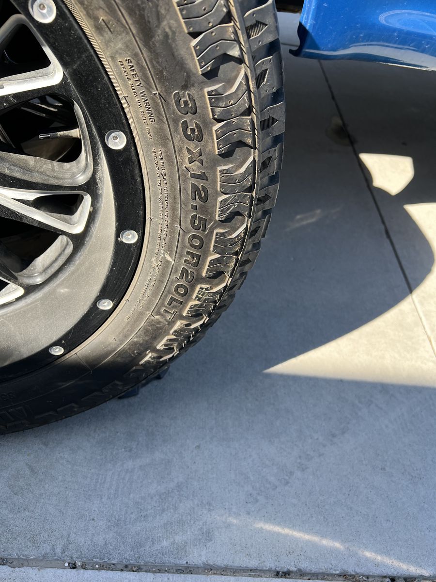 Venmo33x12.5xR20. Only 3 thousand miles on tires. All almost brand new. Set of four.