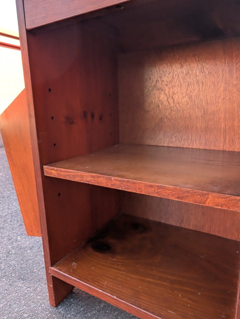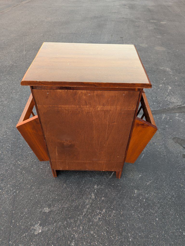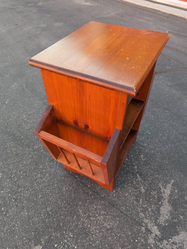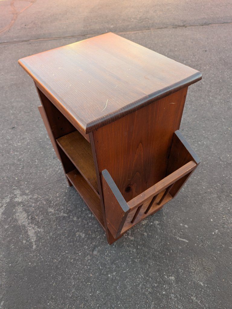 VenmoUp for sale is a wooden end or side table or nightstand with an adjustable shelf and two magazine holders. In good condition overall.