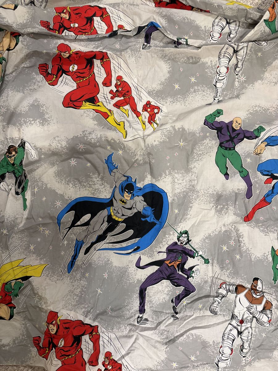 VenmoFull/ Queen Marvel DC Superhero Duvet Cover, 2 standard pillow cases, and light up "POW" 9x9 pillow. LIKE NEW! No rips, stains or damage of any kind.