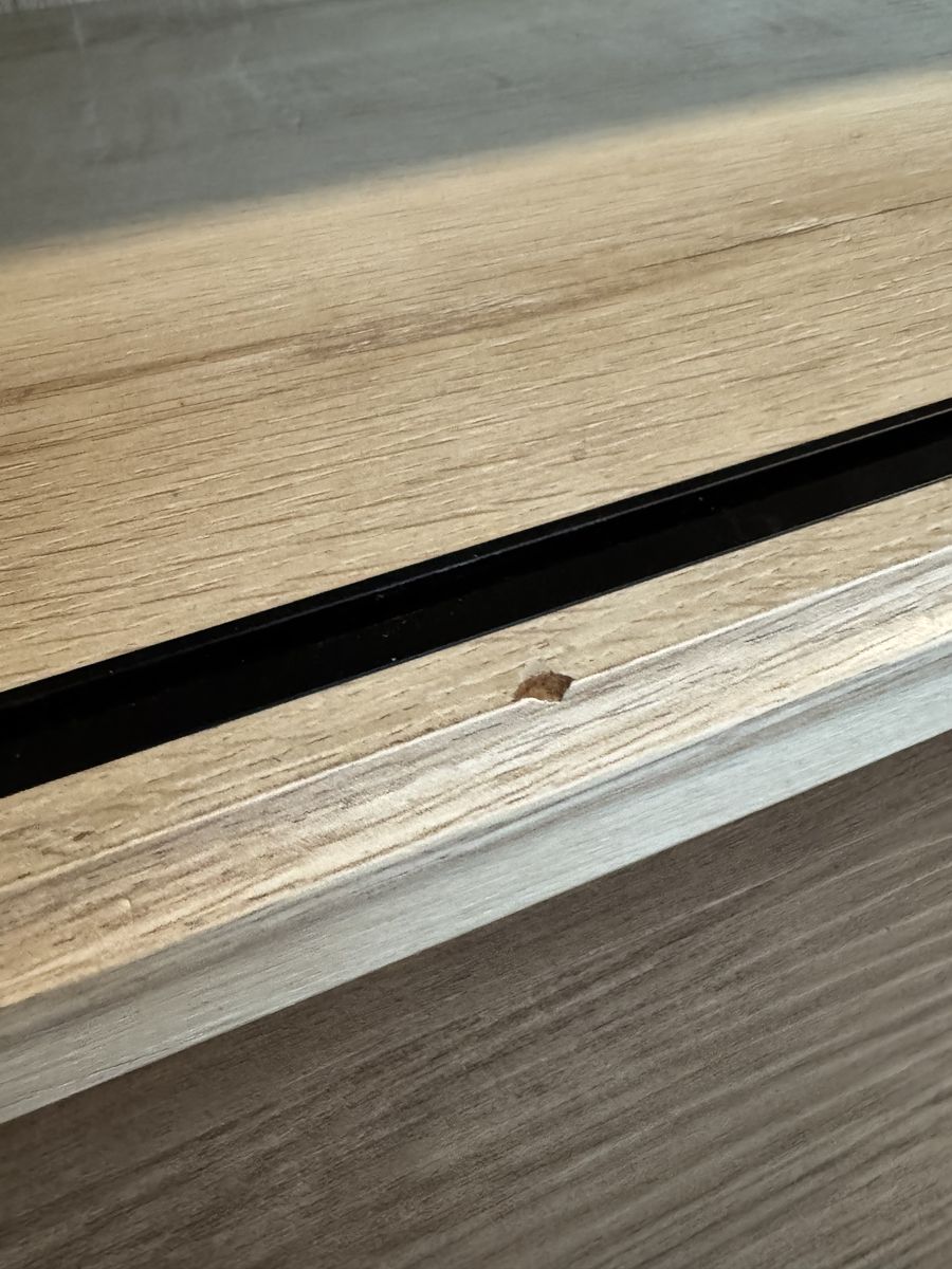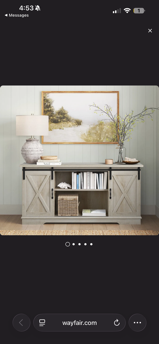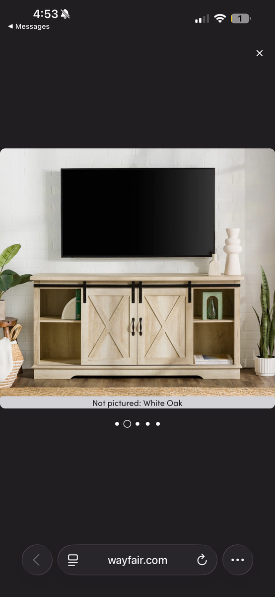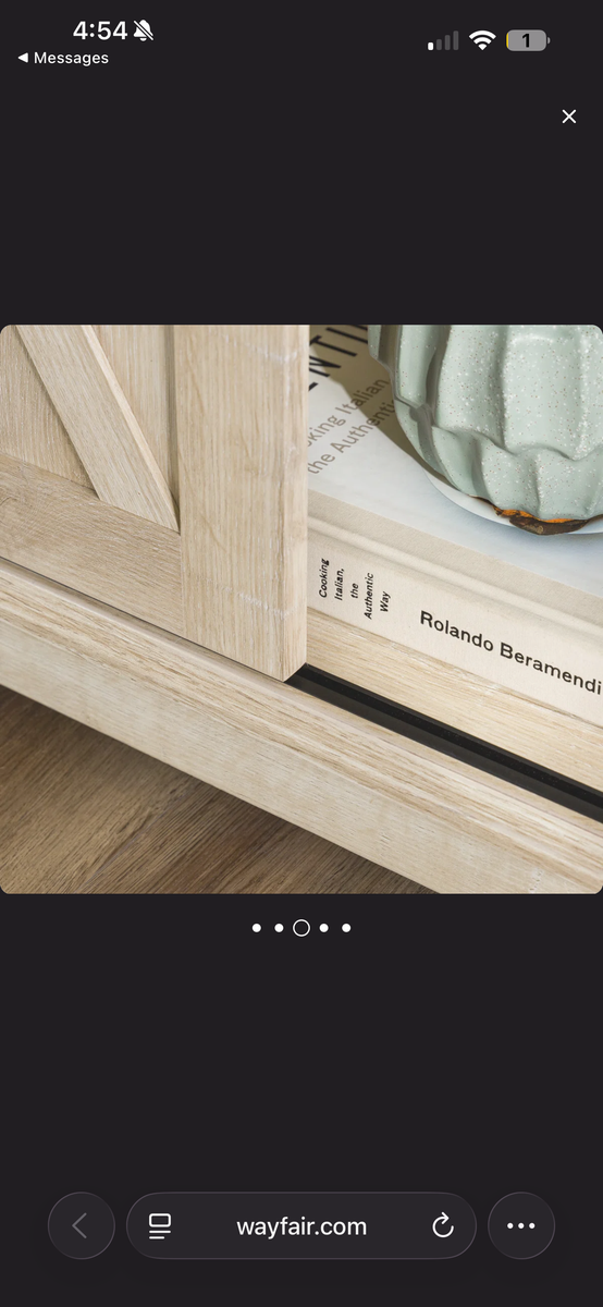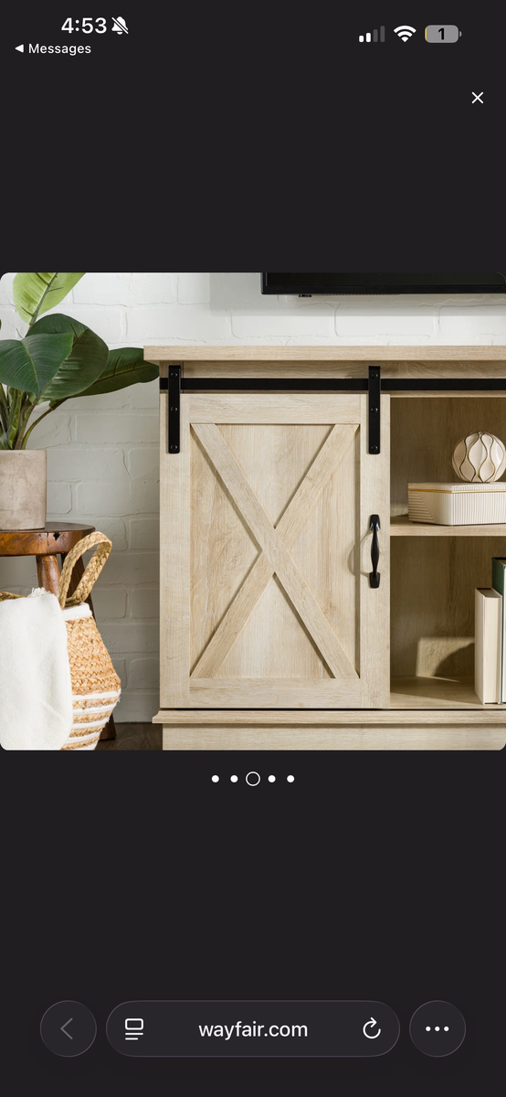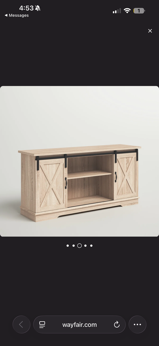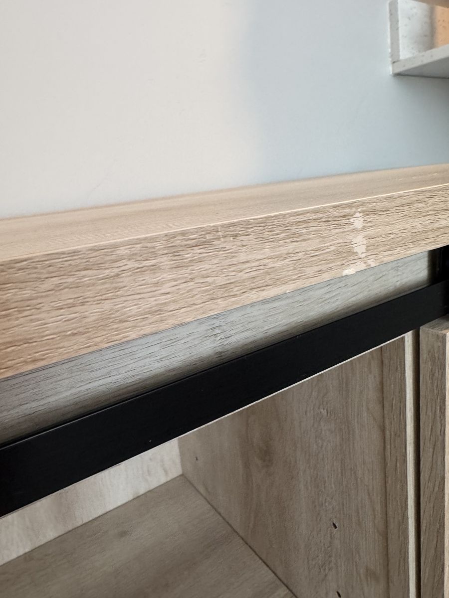 VenmoWe enjoyed the aesthetic of this media center, however we bought a different TV and had to get another stand. Comes with corner protectors for children, but can be removed. There is some minor wear (a little paint chip spot on the top, and a small nick in the bottom). It is a visually nice piece, and can work well with many home design styles.