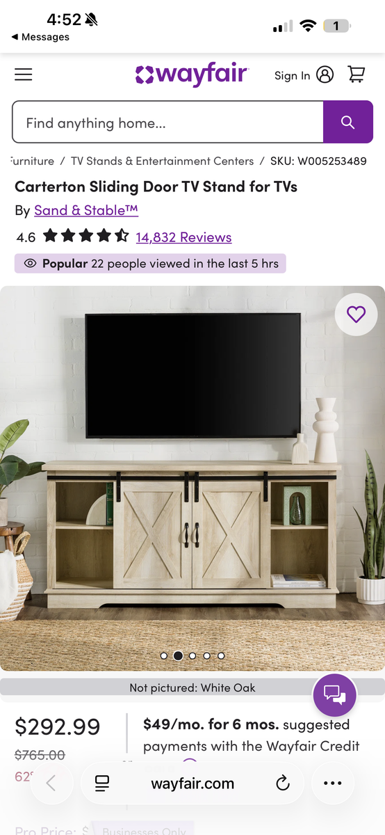 Price on wayfair was initially $765. Right now, it's on sale for around $300.