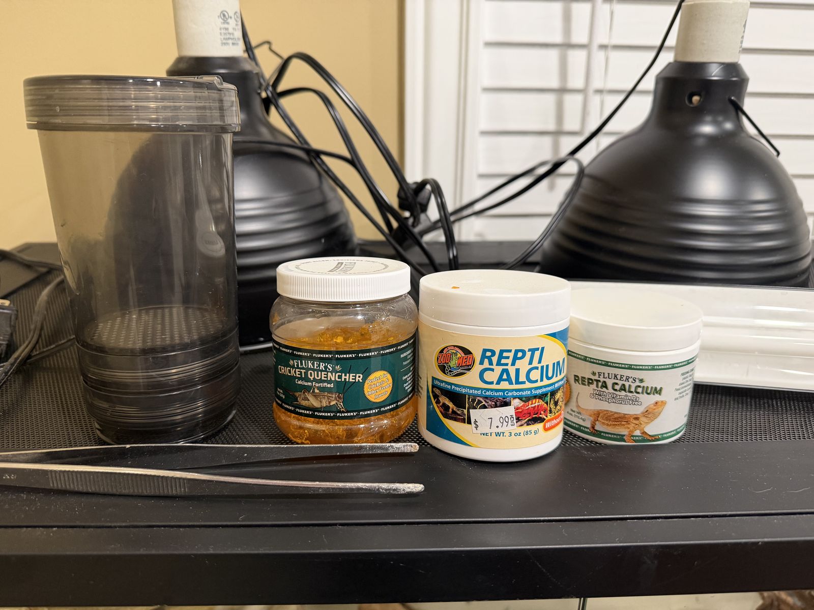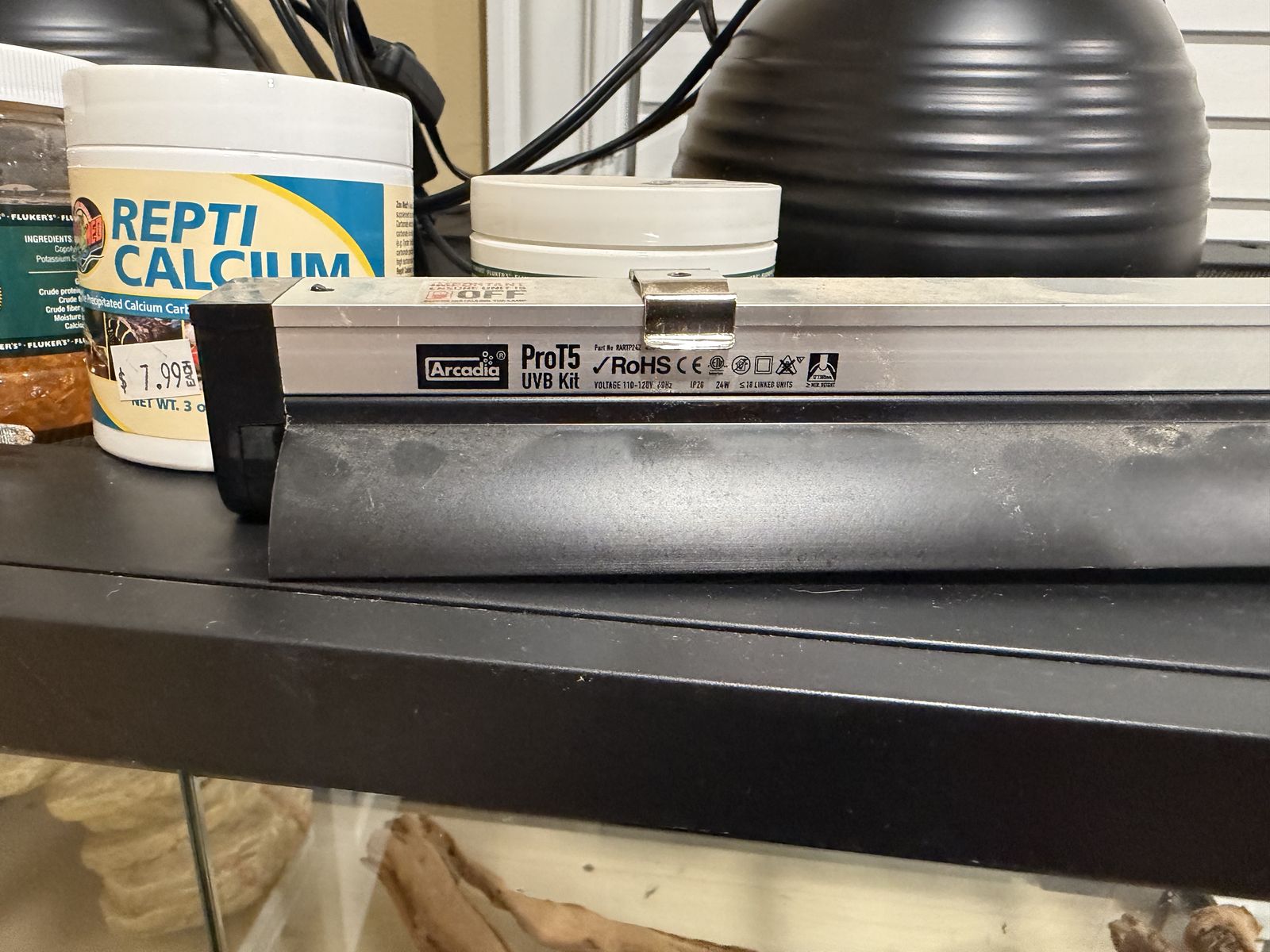 ZelleSelling a just like new reptile enclosure. Only had it for about 1 year. 40 gallon enclosure with two feeding dishes, cave, basking log. The two front doors open out for easy access to enclosure. Has 2 lamps for basking lights, and a 24” Arcadia dessert UVB lamp with brand new UVB desert bulb. Also throwing in my feeder insect container with calcium supplement and cricket duster. Call or text with any questions.