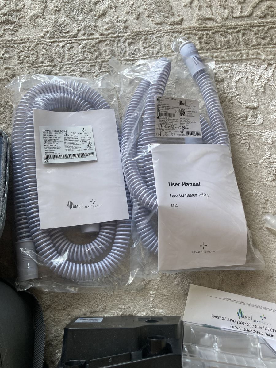I cleaned the nose pillows by soaking in hot tap water with a teaspoon of bleach. Just one of the two heated tubing packages has been used.