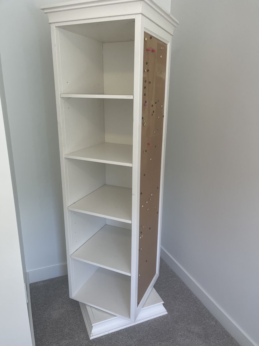Rotating storage with mirror, hooks,corkboard. All in very good shape.
