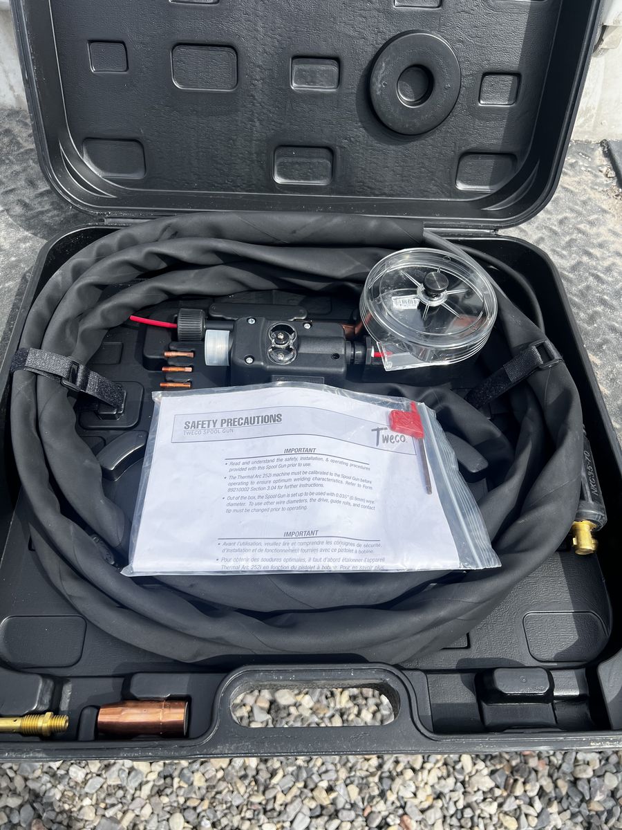 Ideal for a Variety of Applications - including aluminum, stainless steel, and mild steel welding Long Cables allows operator to access hard to weld areas Three-Layer Conductor Tube Construction - (Copper Tube/ Silicon-Resin Glass Insulator / Metal Jacket) with quick disconnect Tweco 160 Amp and 200 Amp Spool Guns - designed to work with Tweco new inverter technology on the Fabricator® series of welding systems Comfortable Pistol-Grip Handle Design - with outer spool tension control for ease of operation ESG-1 Control Box - provides the gas solenoid with pre/post purge control and run-in control for arc starting Tweco 200 Amp Spool Guns - Include 3-turn potentiometer for fine wire feed speed control Tweco 200 Amp Spool Guns adapt to most welding machines with the use of ESG-1 Control Box \