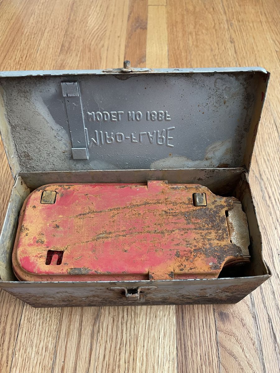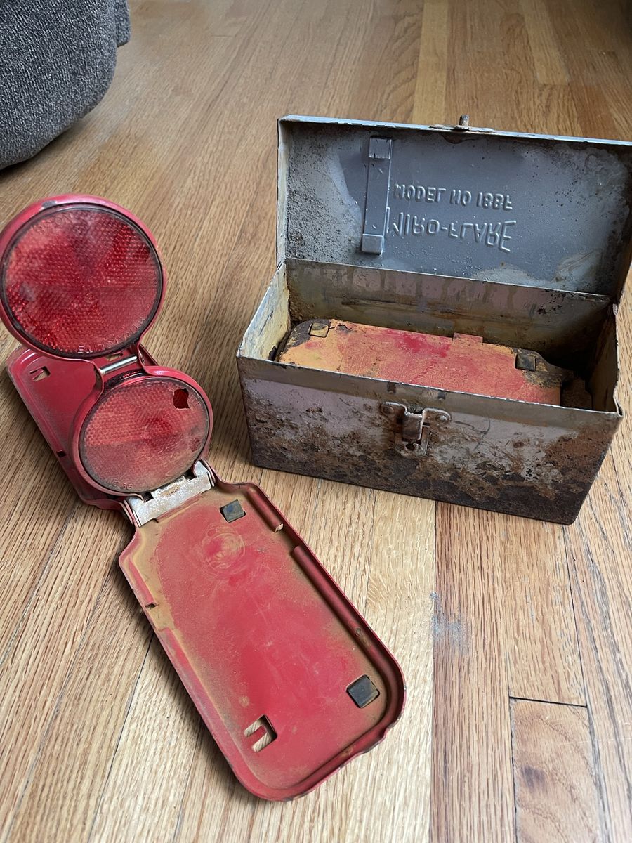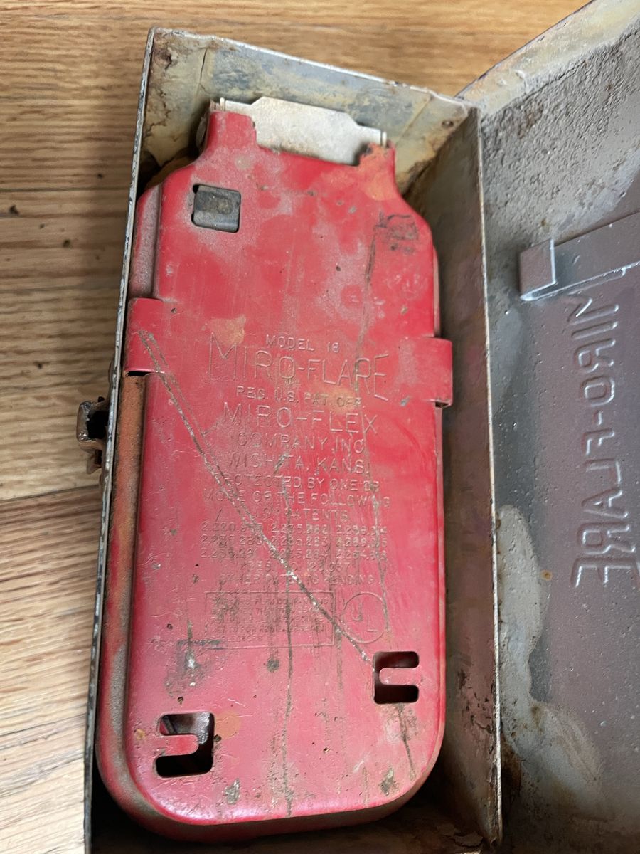 Vintage Miro-Flare roadside emergency flare kit in original metal case (Model No. 18BF).