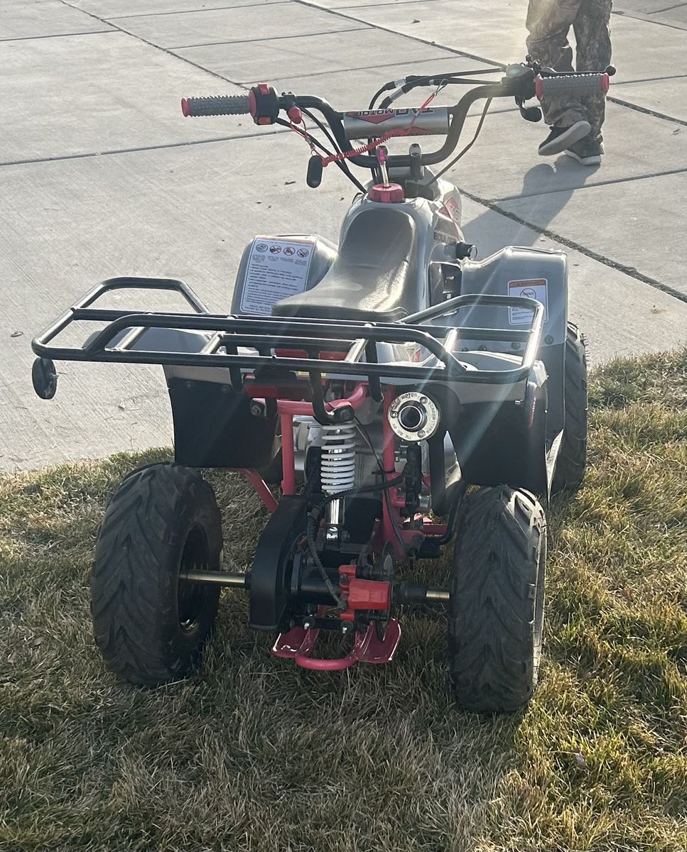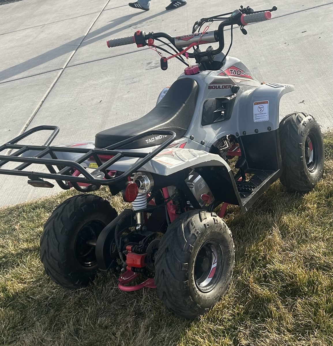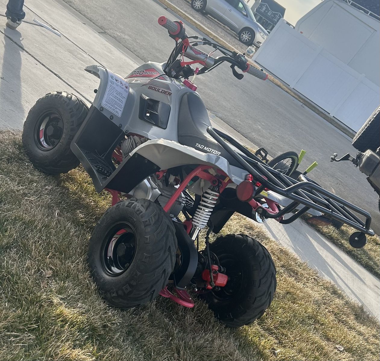 Venmo2025 Grey/ Pink Tao Tao Four Wheeler 110cc New has been rode 2hrs, weight limit 95 pounds, parents remote shut off, goes up to 22 miles an hour also has a turn down switch that can take it down to 5 miles an hour. Like brand new only been ridden for two hours. Takes high octane gas.