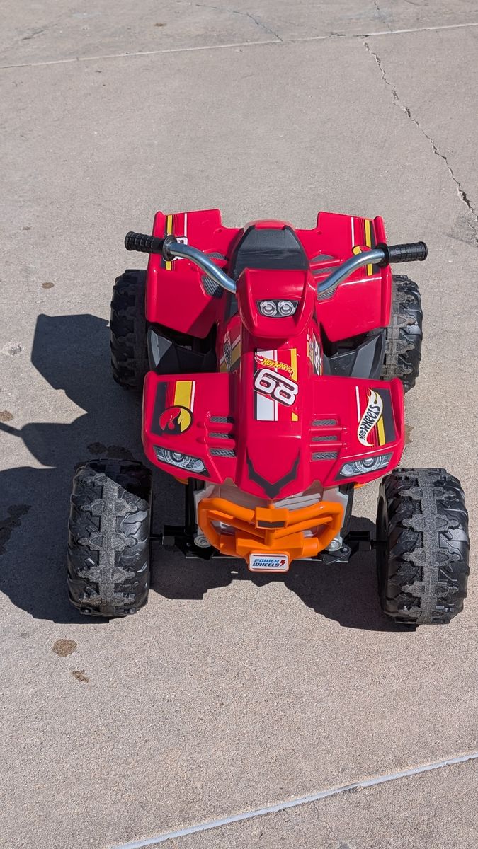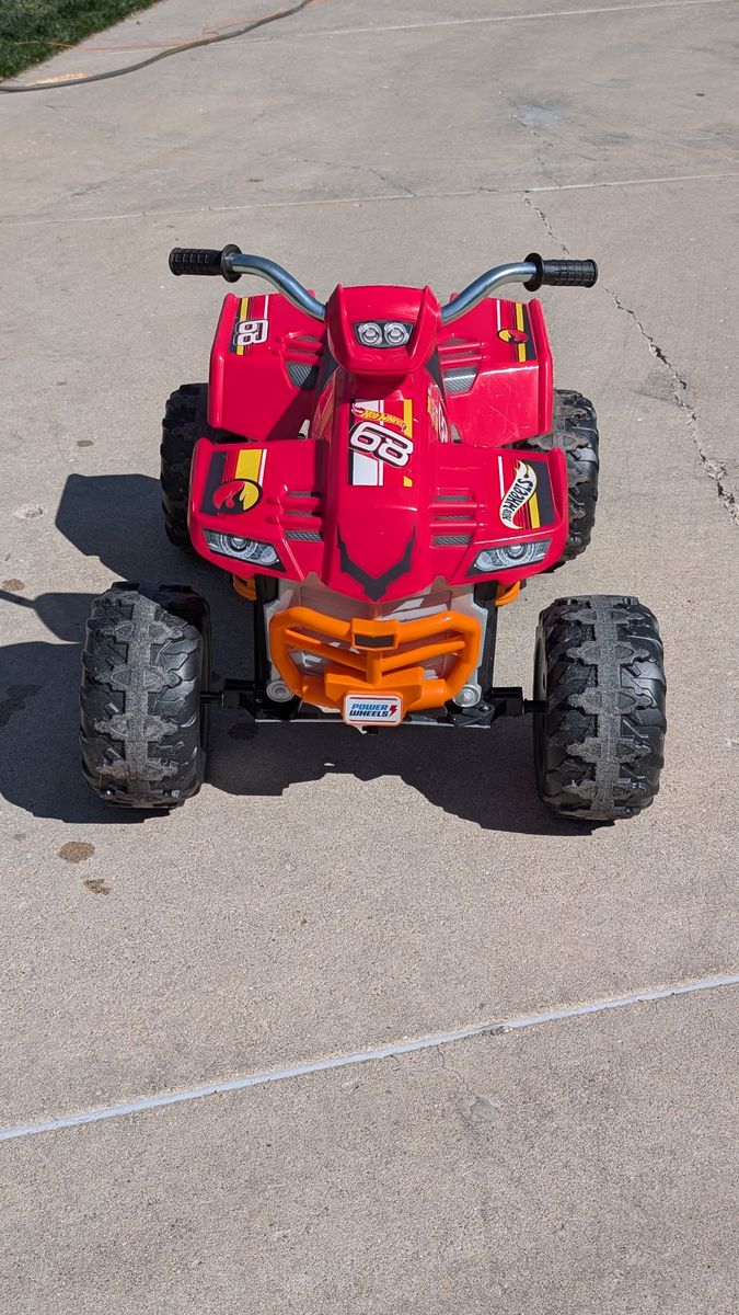 VenmoBattery-powered ride-on ATV with Hot Wheels colors and graphics. Drives 3 and 6 mph max. forward; 3 mph max. revers. Vehicle drives on hard surfaces, grass and other rough terrain.