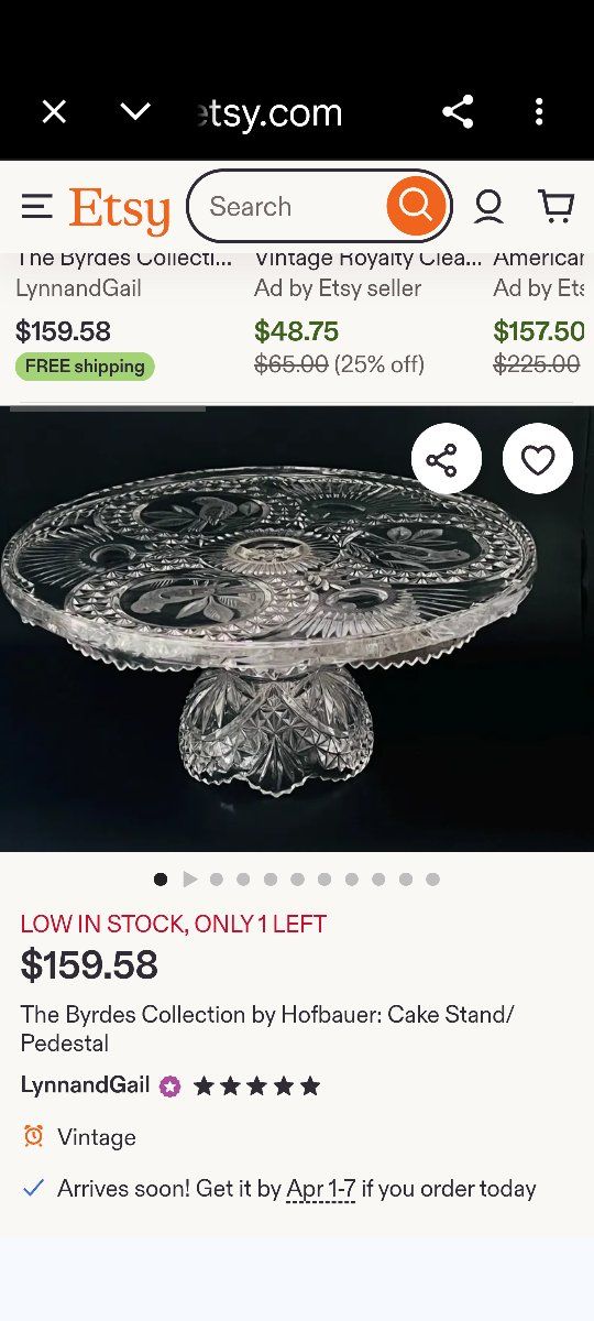VenmoThe Byrdes Collection cystal cake stand. Cake Stand measures 12" across and 5.5" tall. Vintage. Smoke and pet free home
