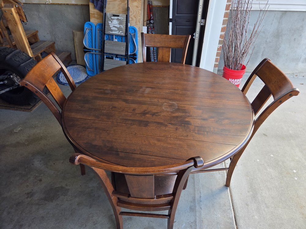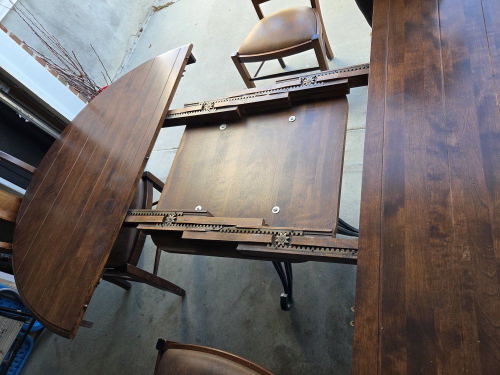 Venmovery nice nicholes and stone table with leaf and 6 chairs. chairs are very comfortable. asking 600$ obo. please text with questions 80one-815-167five