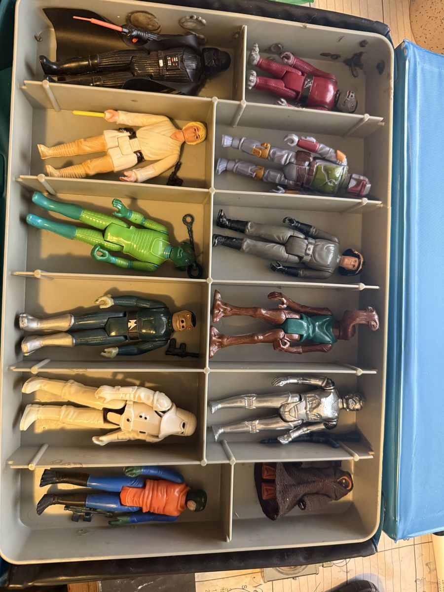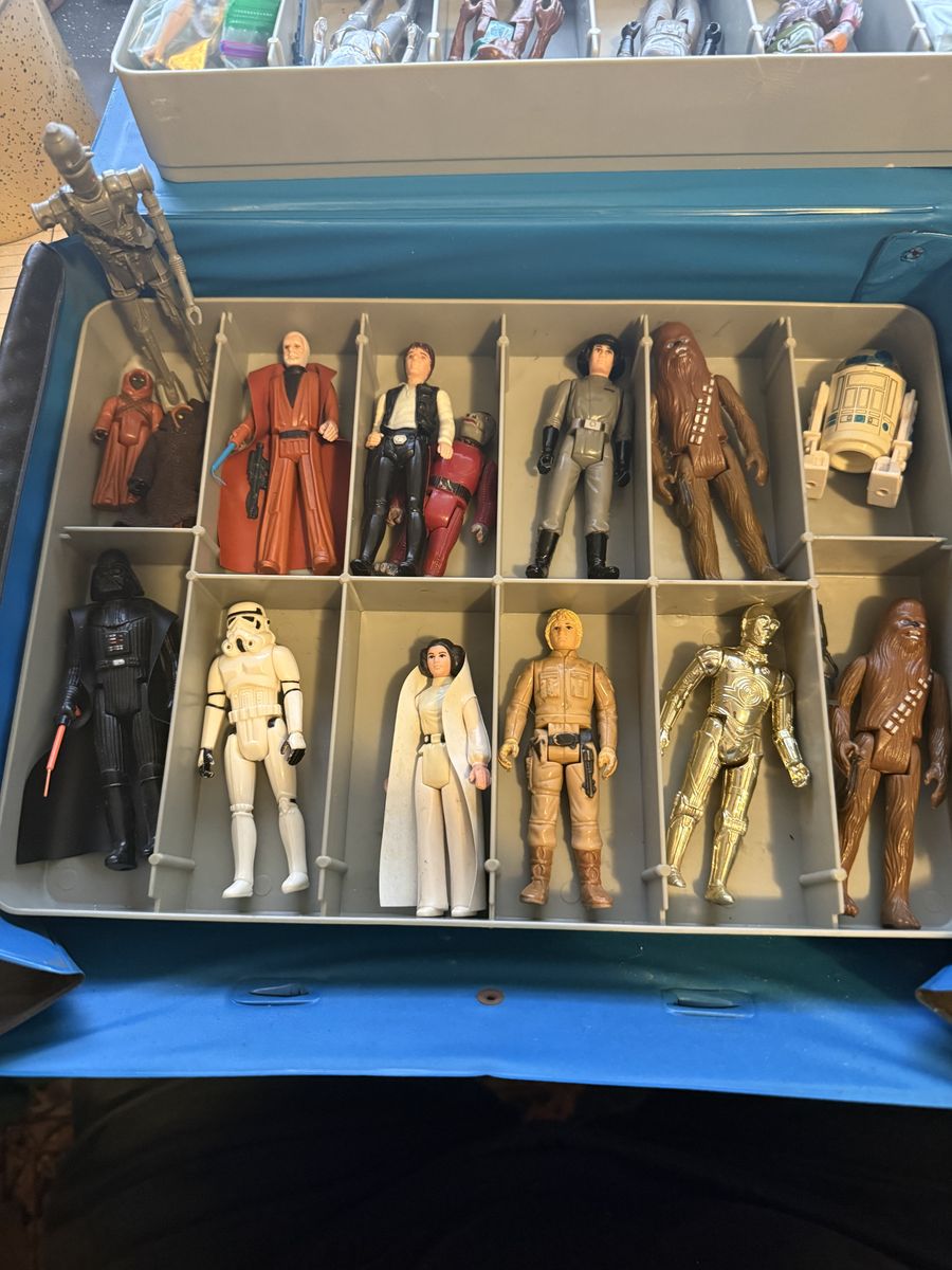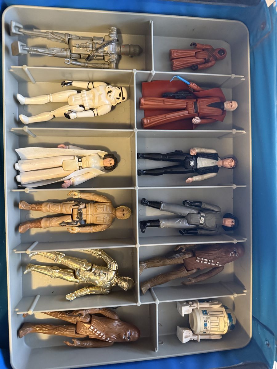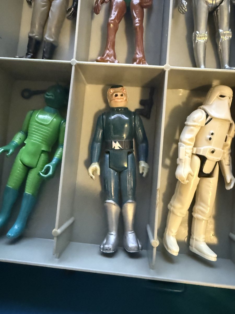 GooglePayStar Wars action figures with a very nice blue Snaggletooth and assorted figures from 1977 & 1978, case included!