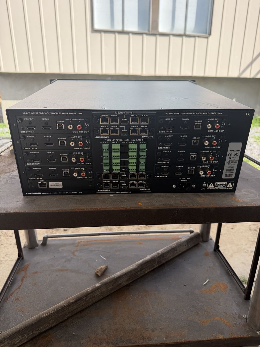 A fully modular and expandable 8x8 DigitalMedia matrix switcher offering ultra-fast digital video and audio switching, and lossless HD multiroom signal distribution, for all types of AV sources. Provides complete management for SD, HD, UHD, 2K, 4K, and computer signals with advanced HDCP support, EDID resolution management, CEC signal management, USB signal routing, integrated Ethernet switch, simultaneous 7.1 and stereo audio, H.264 streaming, and a full range of selectable input and output types.