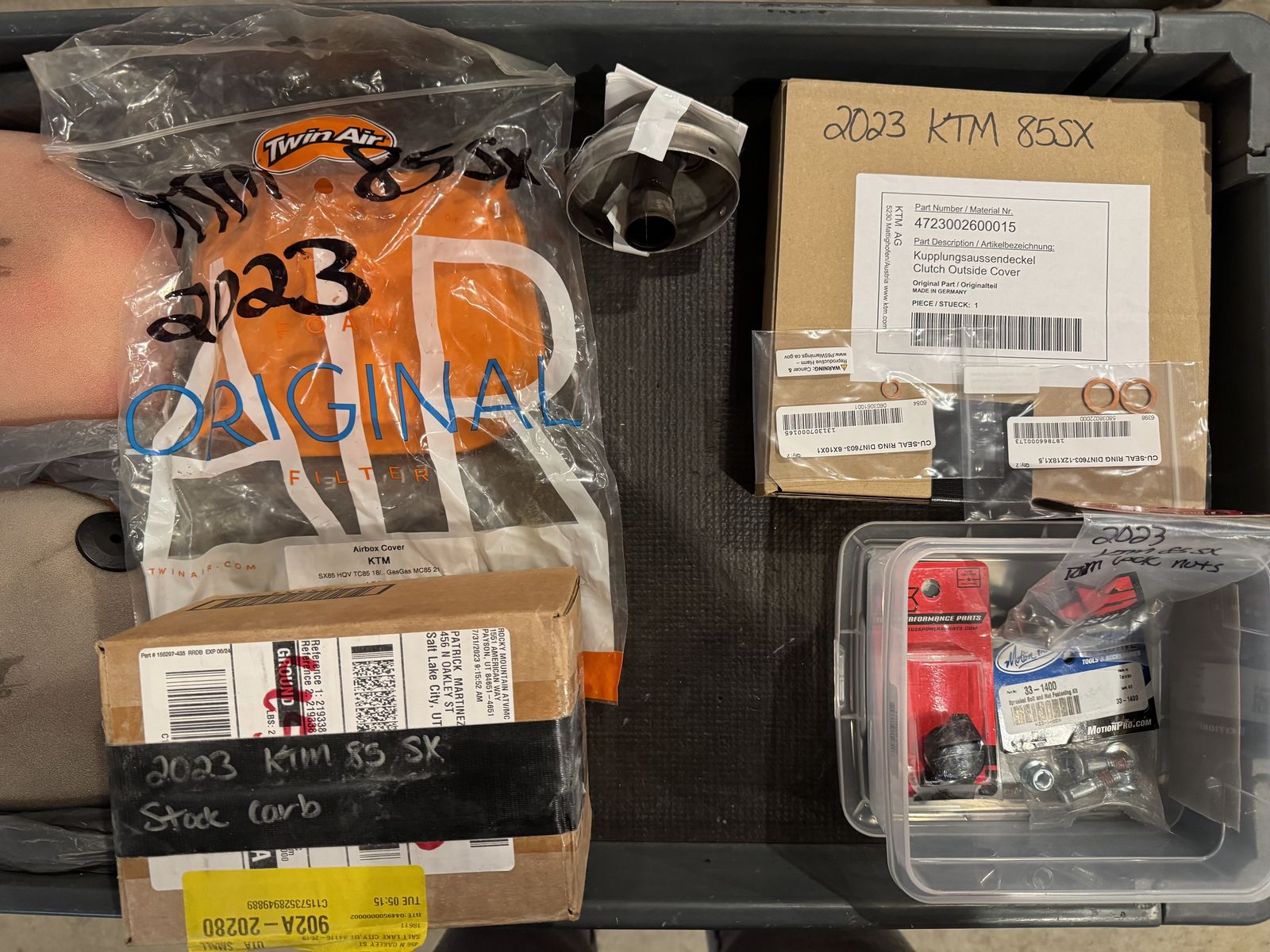 2023 KTM 85 sx. selling because my son grew out of it. It has 44 hours on the hour meter. It has both the small and big wheels so your kid can grow with it. It has an extra rear rim with paddle. it comes with a lectron billetron carb, pipe guard, newer tires, enduro engineering spark arrestor on stock silencer, extra air filters, air filter box cover, extra rear rotor and bolts, stock carb, acerbis skid plate. If you have any questions you can message me. NO TRADES.